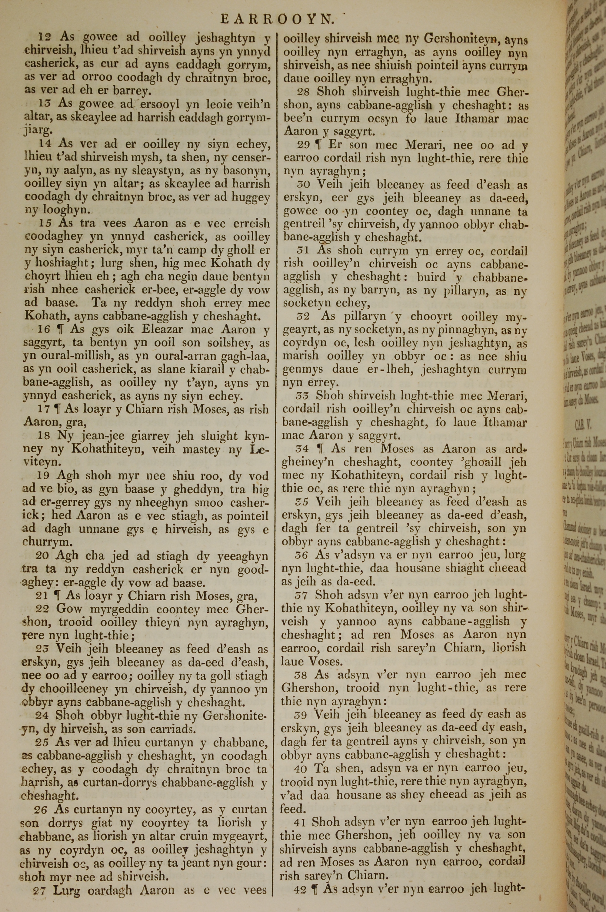 1819年曼岛语圣经 民数记 4 章 12 节到 4 章 42 节