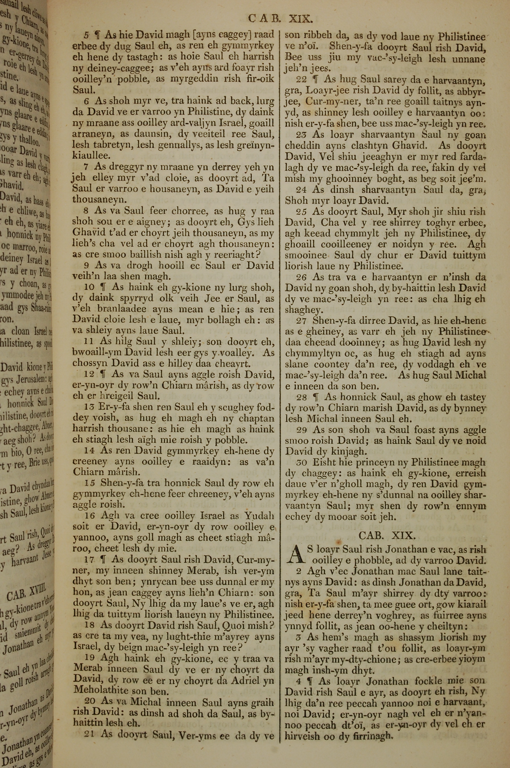 1819年曼岛语圣经 撒母耳记上 18 章 5 节到 19 章 4 节