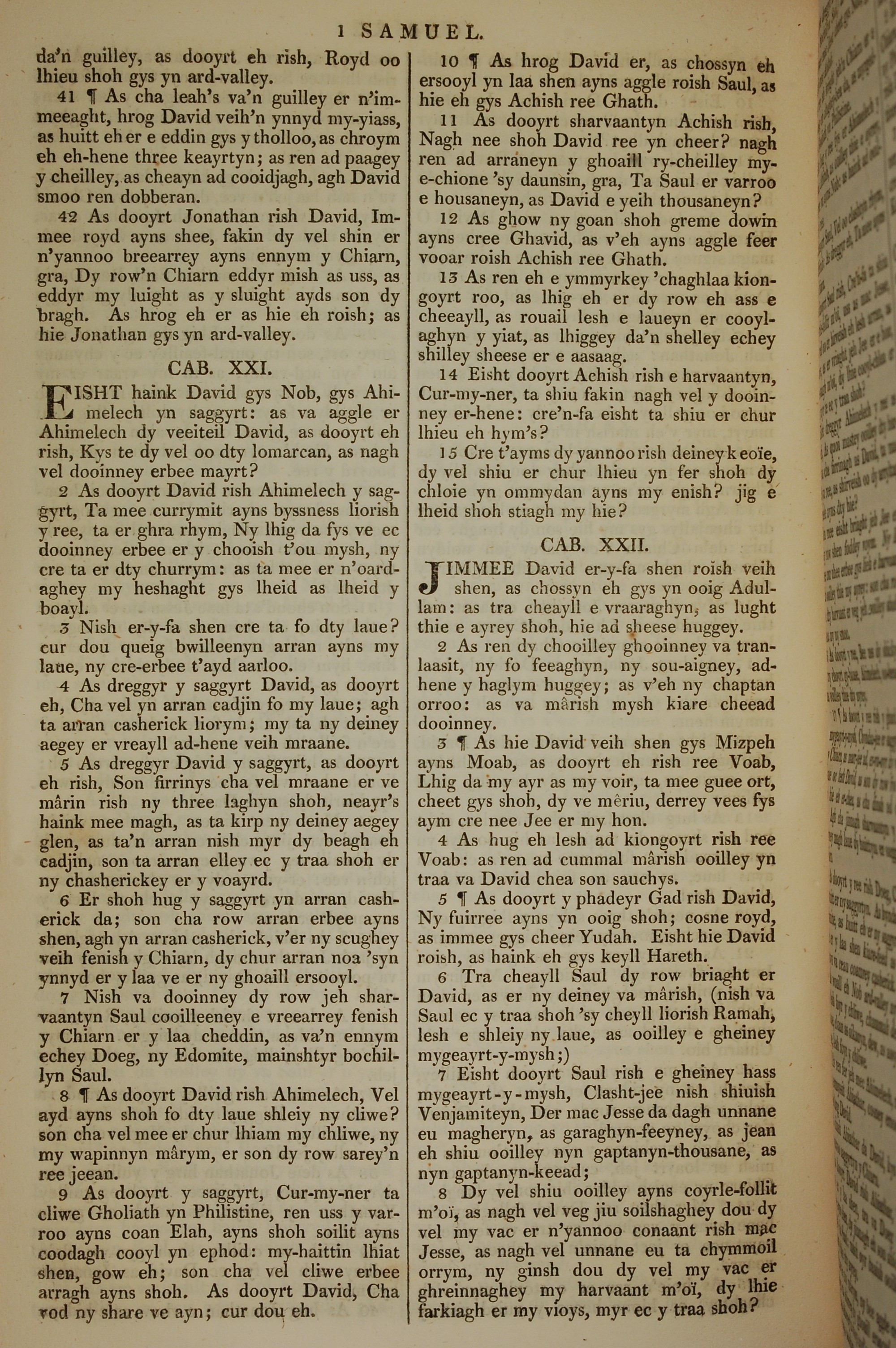 1819年曼岛语圣经 撒母耳记上 20 章 41 节到 22 章 8 节