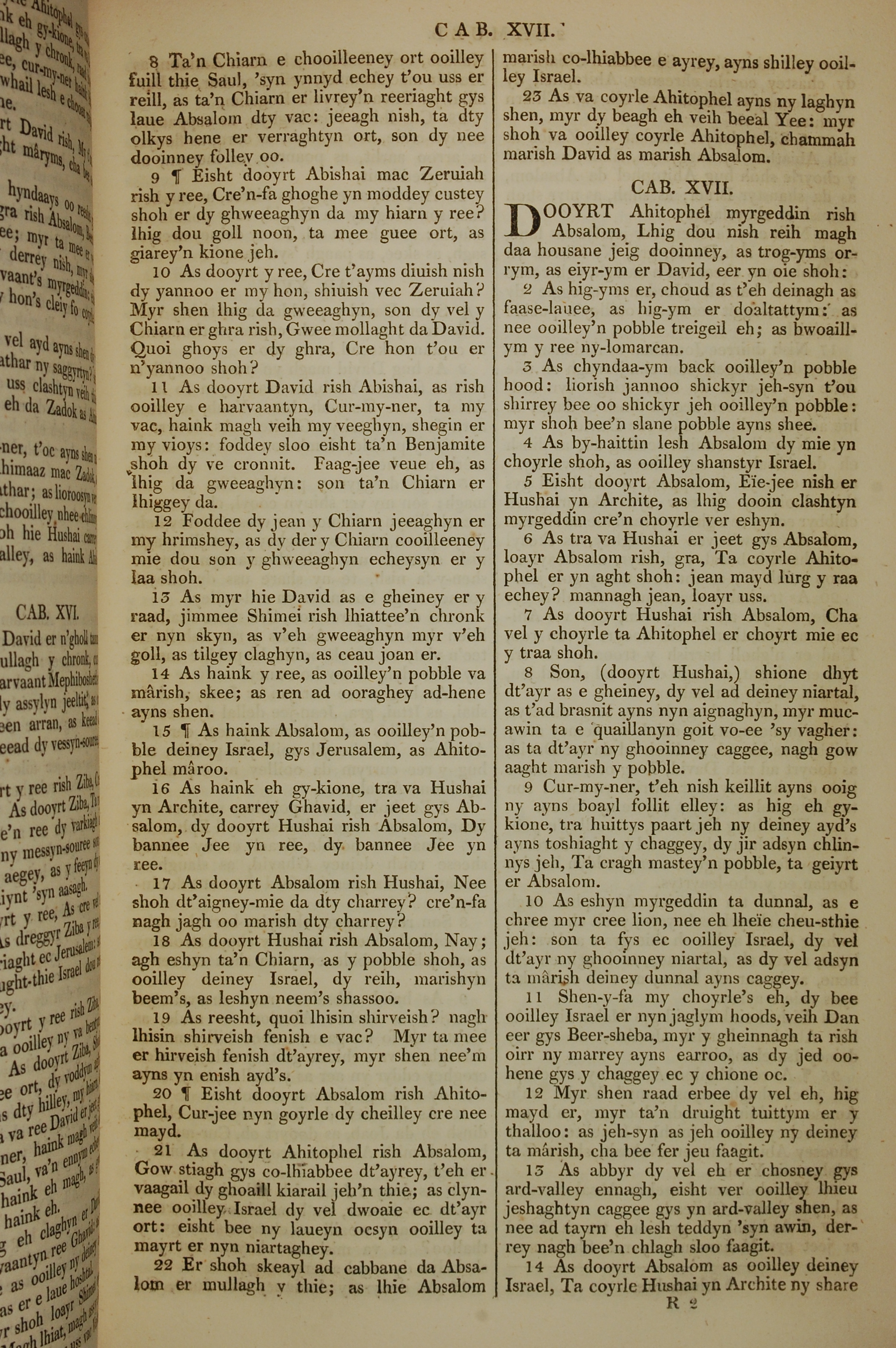1819年曼岛语圣经 撒母耳记下 16 章 8 节到 17 章 14 节