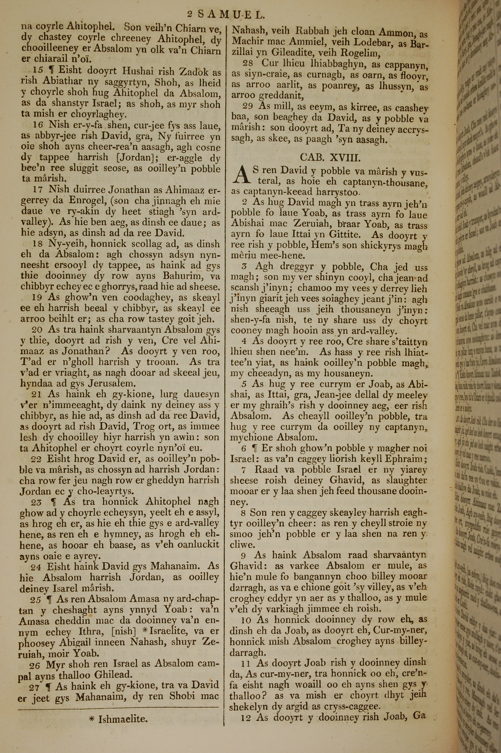 1819年曼岛语圣经 撒母耳记下 17 章 15 节到 18 章 12 节