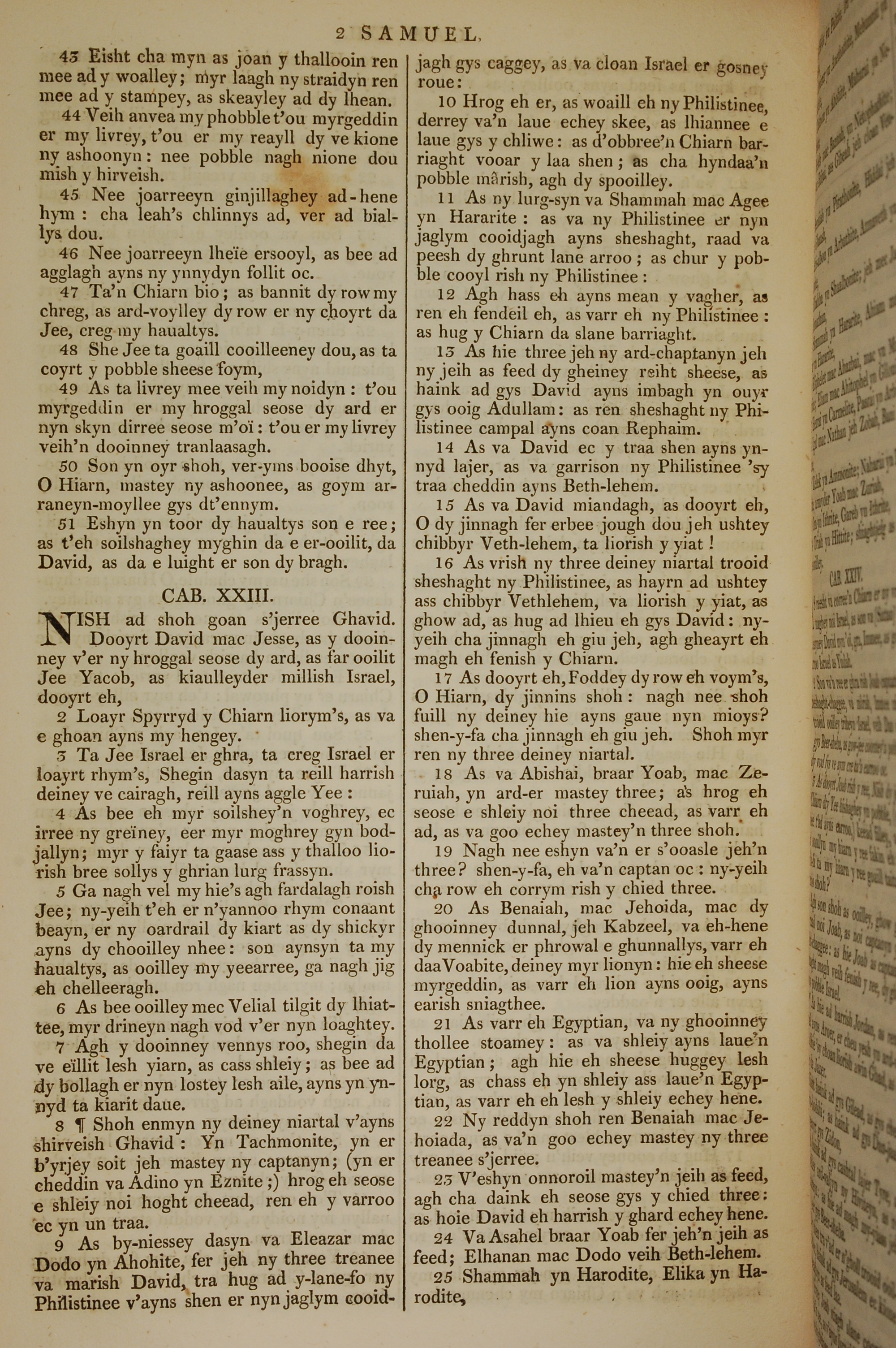 1819年曼岛语圣经 撒母耳记下 22 章 43 节到 23 章 25 节