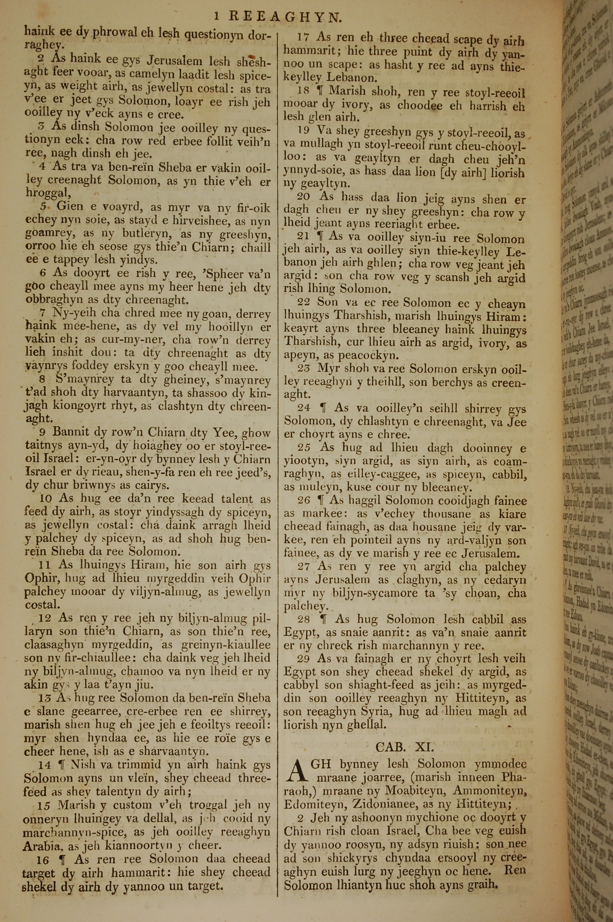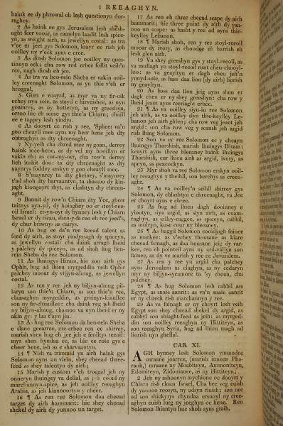 1819年曼岛语圣经 列王纪上 10 章 2 节到 11 章 2 节