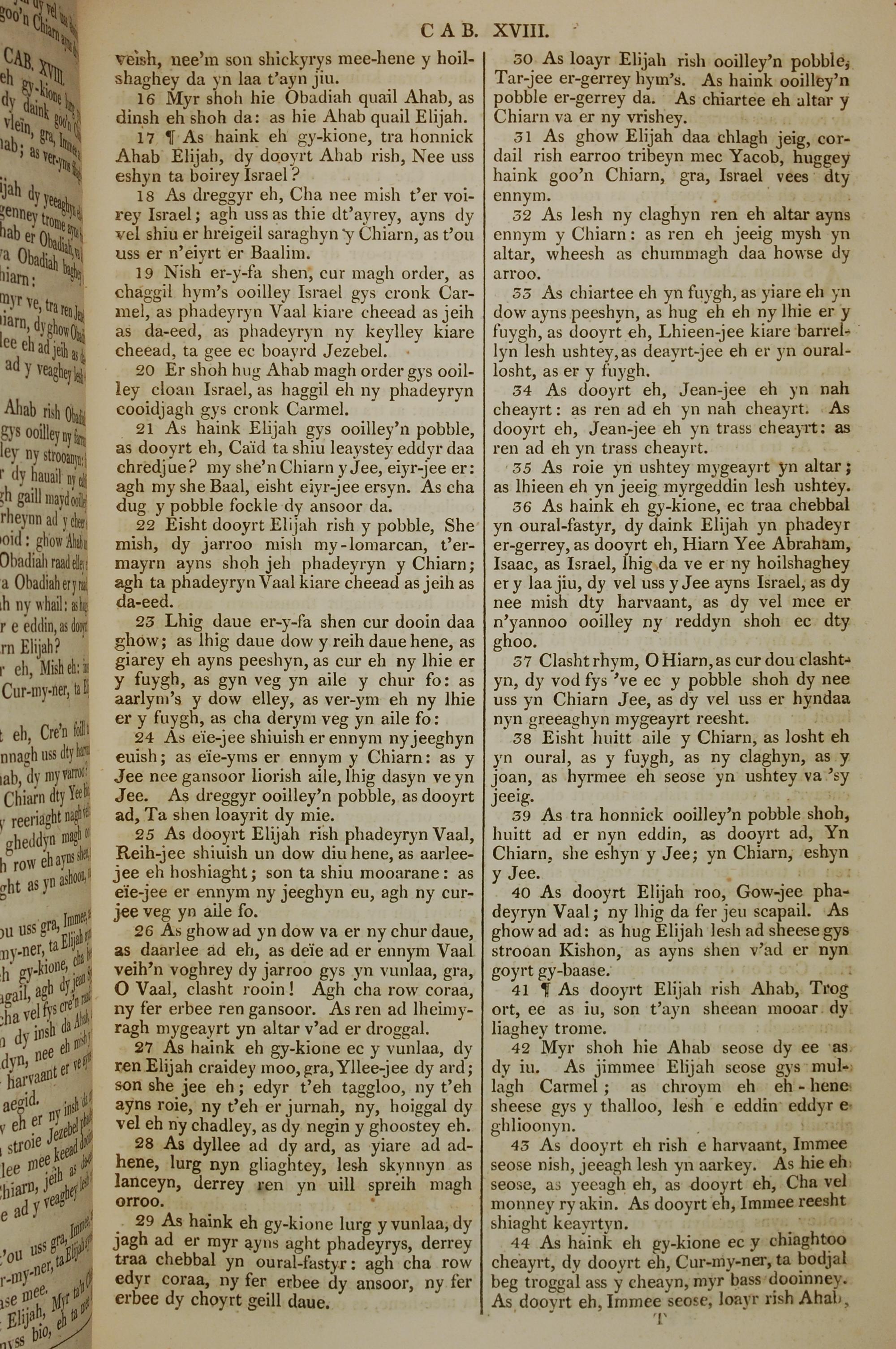 1819年曼岛语圣经 列王纪上 18 章 16 节到 18 章 44 节