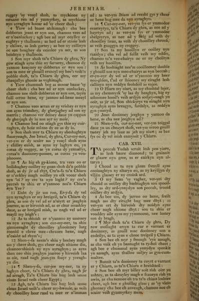 1819年曼岛语圣经 耶利米书 16 章 4 节到 17 章 8 节