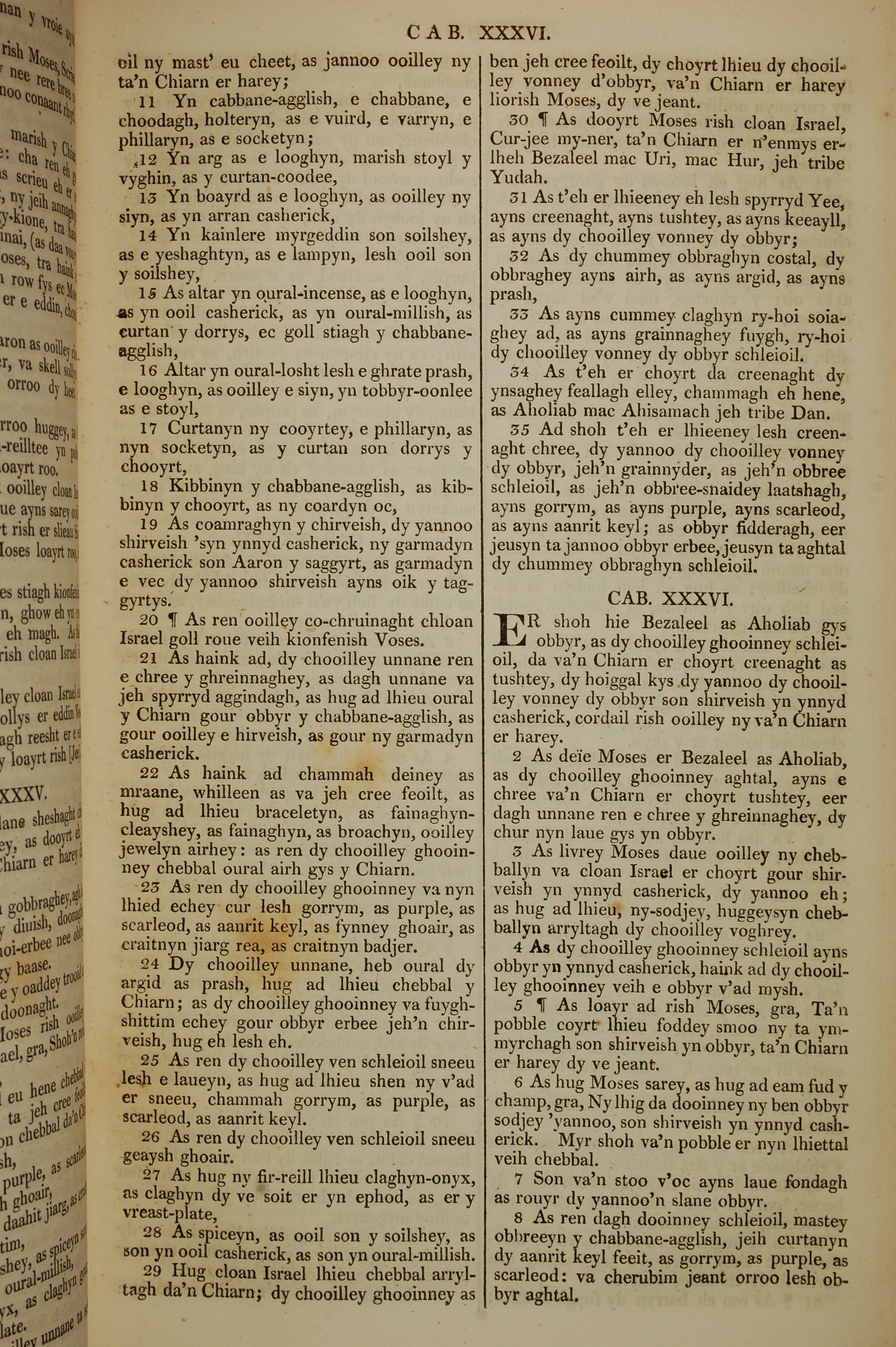 1819年曼岛语圣经 出埃及记 35 章 11 节到 36 章 8 节