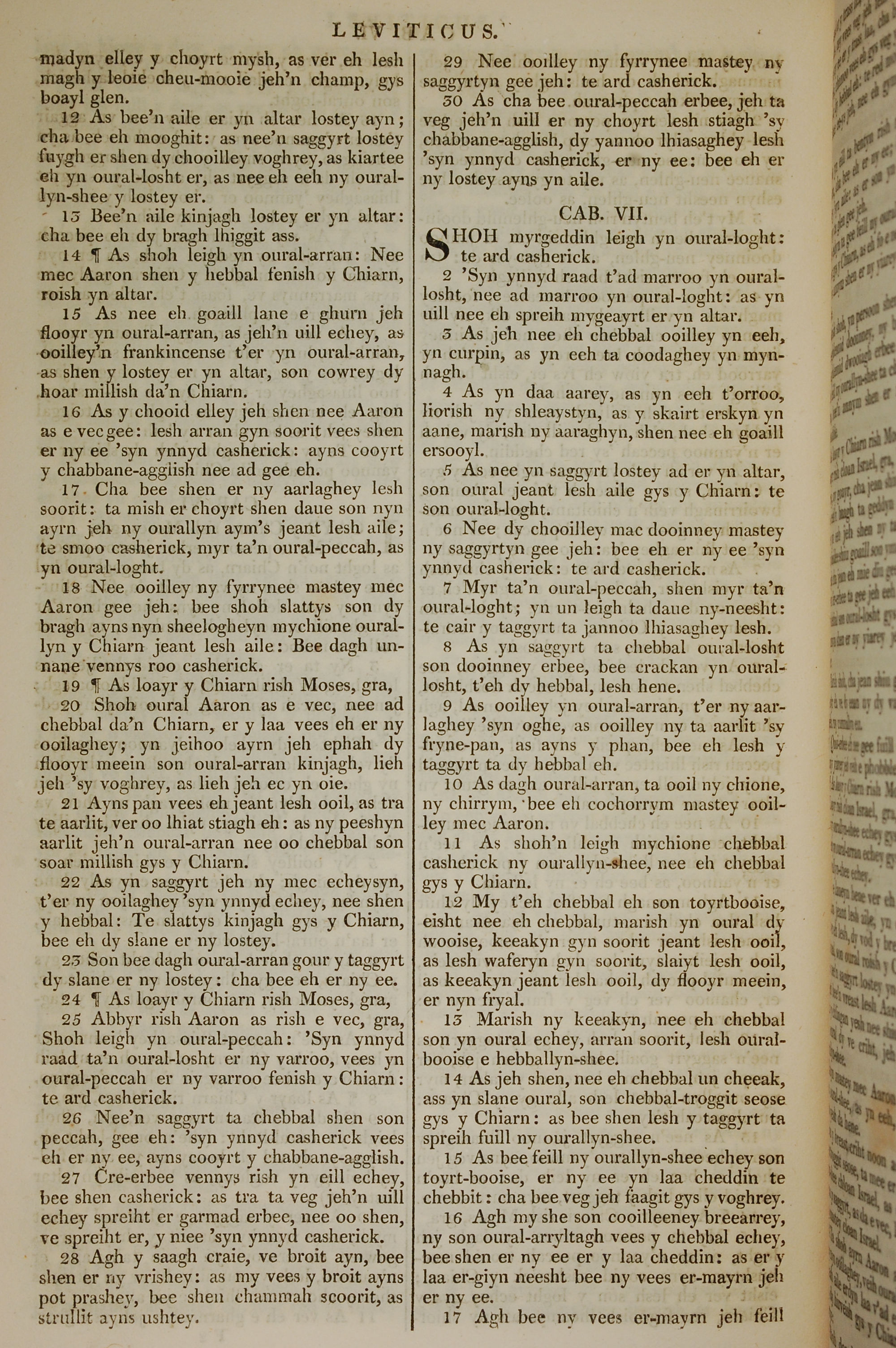 1819年曼岛语圣经 利未记 6 章 12 节到 7 章 17 节