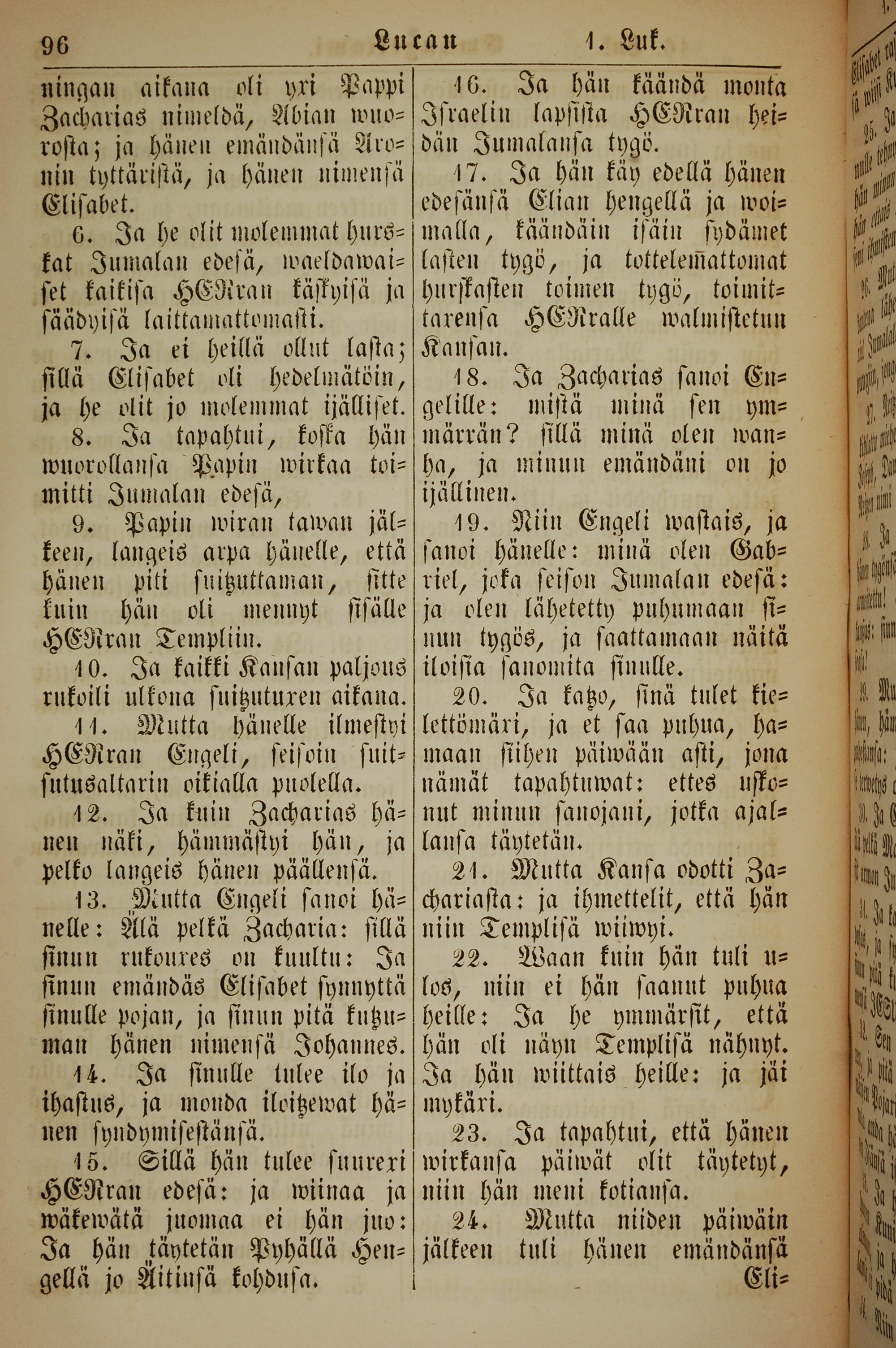 1861年新约全书 路加福音 1 章 6 节到 1 章 24 节