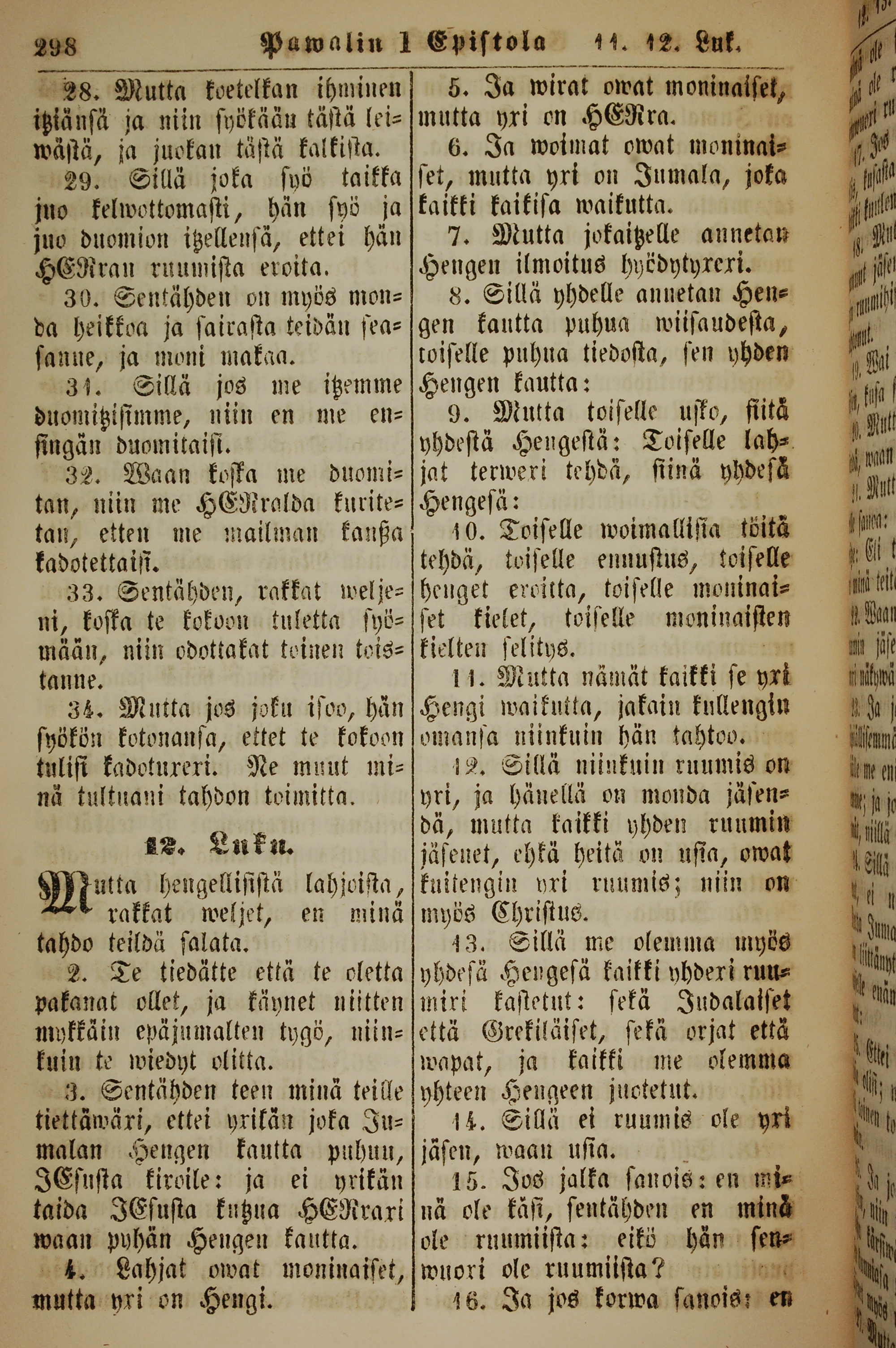 1861年新约全书 哥林多前书 11 章 28 节到 12 章 16 节