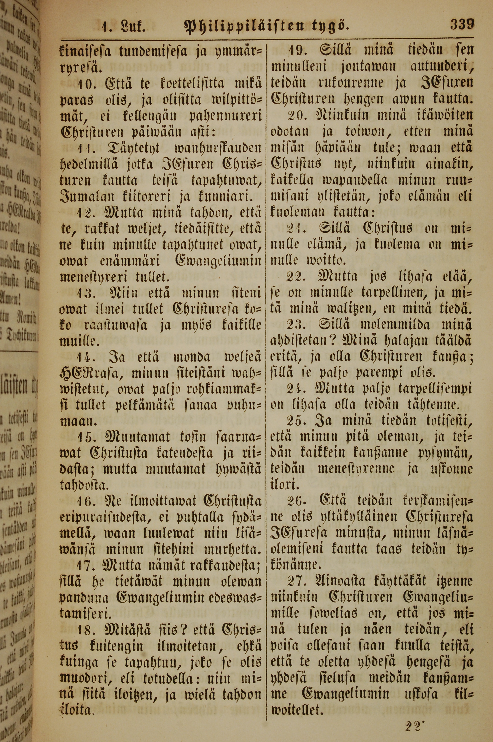 1861年新约全书 腓立比书 1 章 10 节到 1 章 27 节