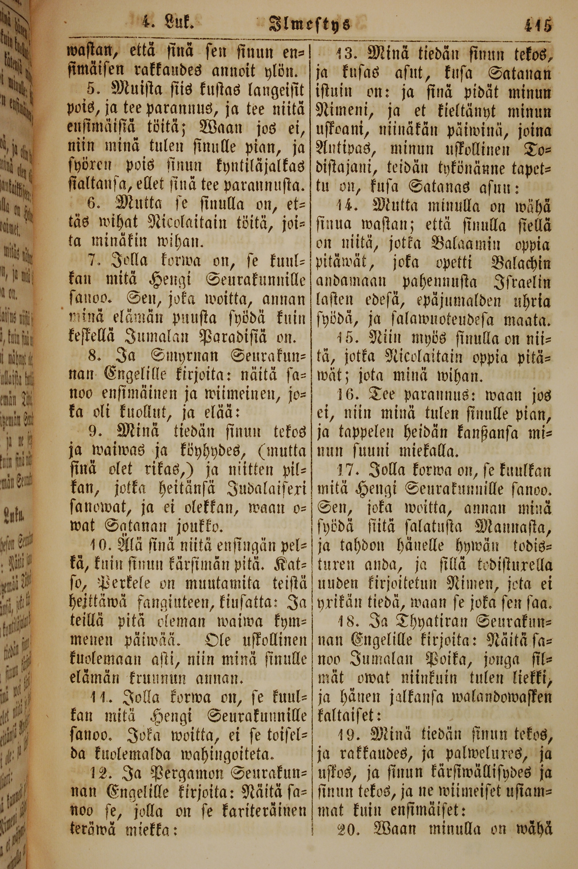 1861年新约全书 启示录 2 章 5 节到 2 章 20 节