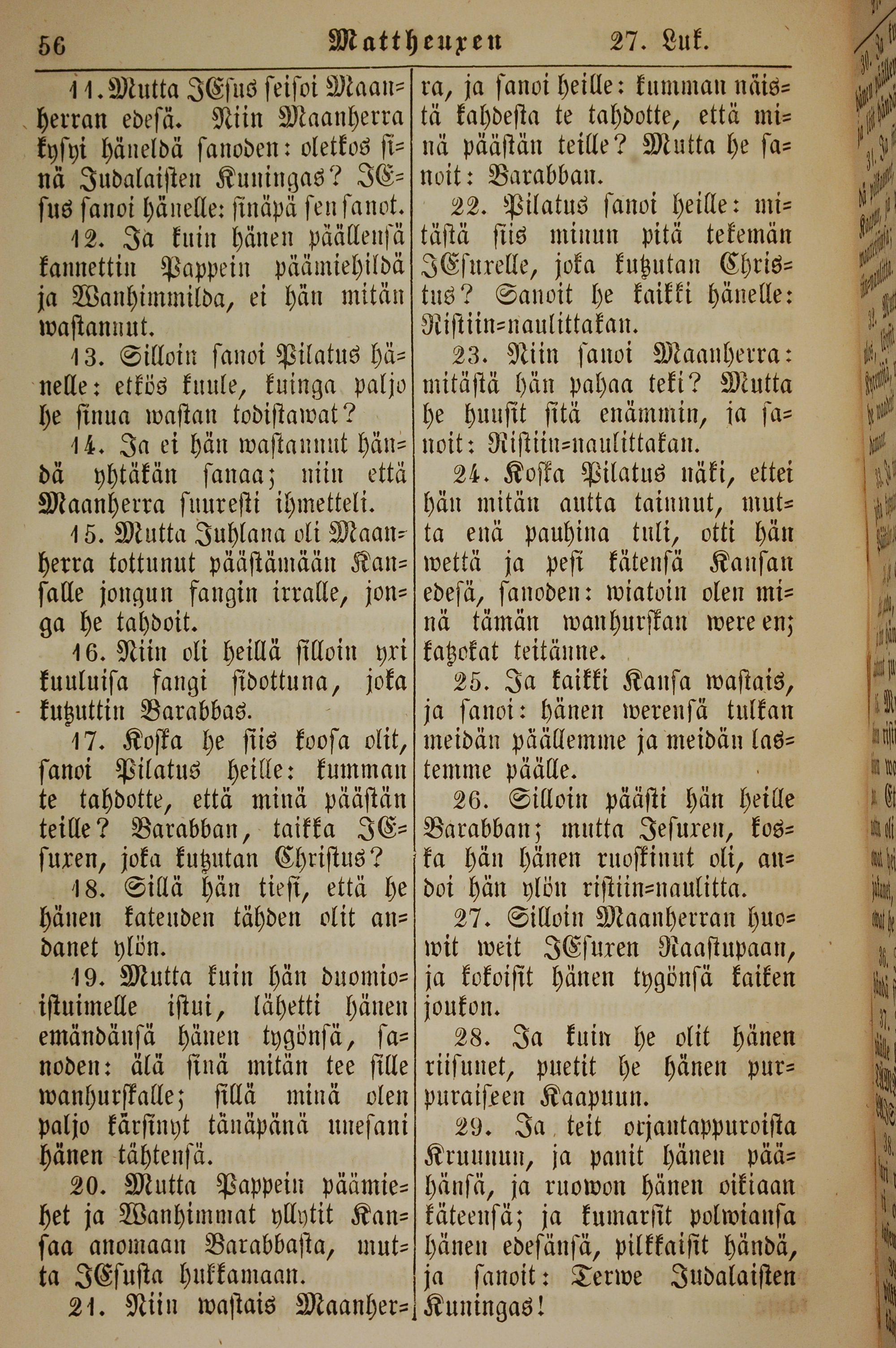 1861年新约全书 马太福音 27 章 11 节到 27 章 29 节