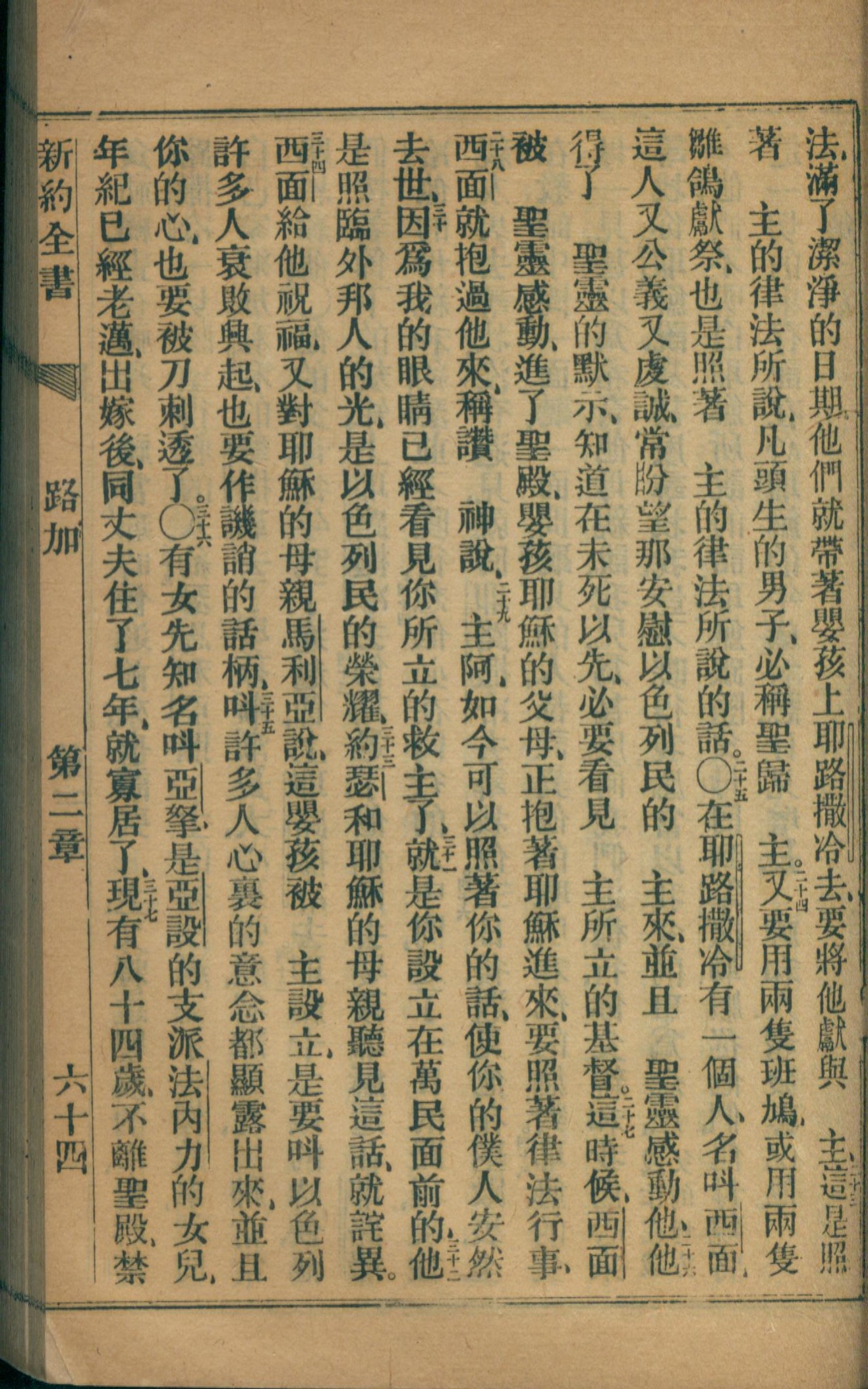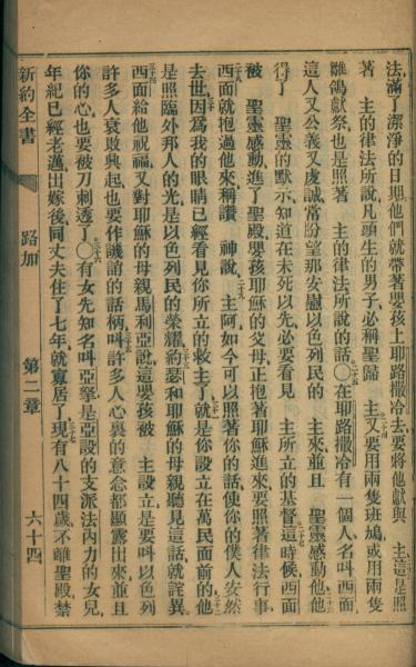 1872年官话新约全书 路加福音 2 章 22 节到 2 章 37 节