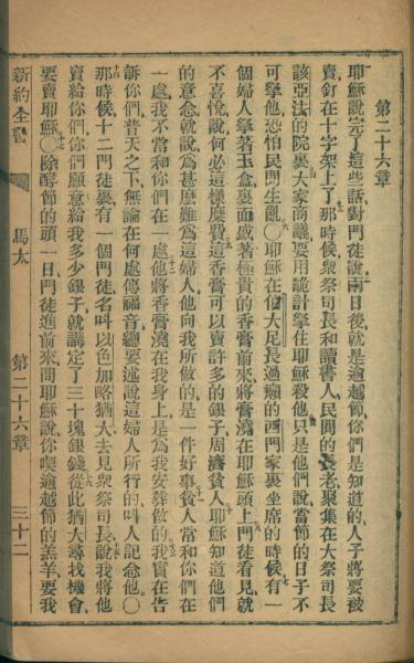1872年官话新约全书 马太福音 26 章 1 节到 26 章 17 节