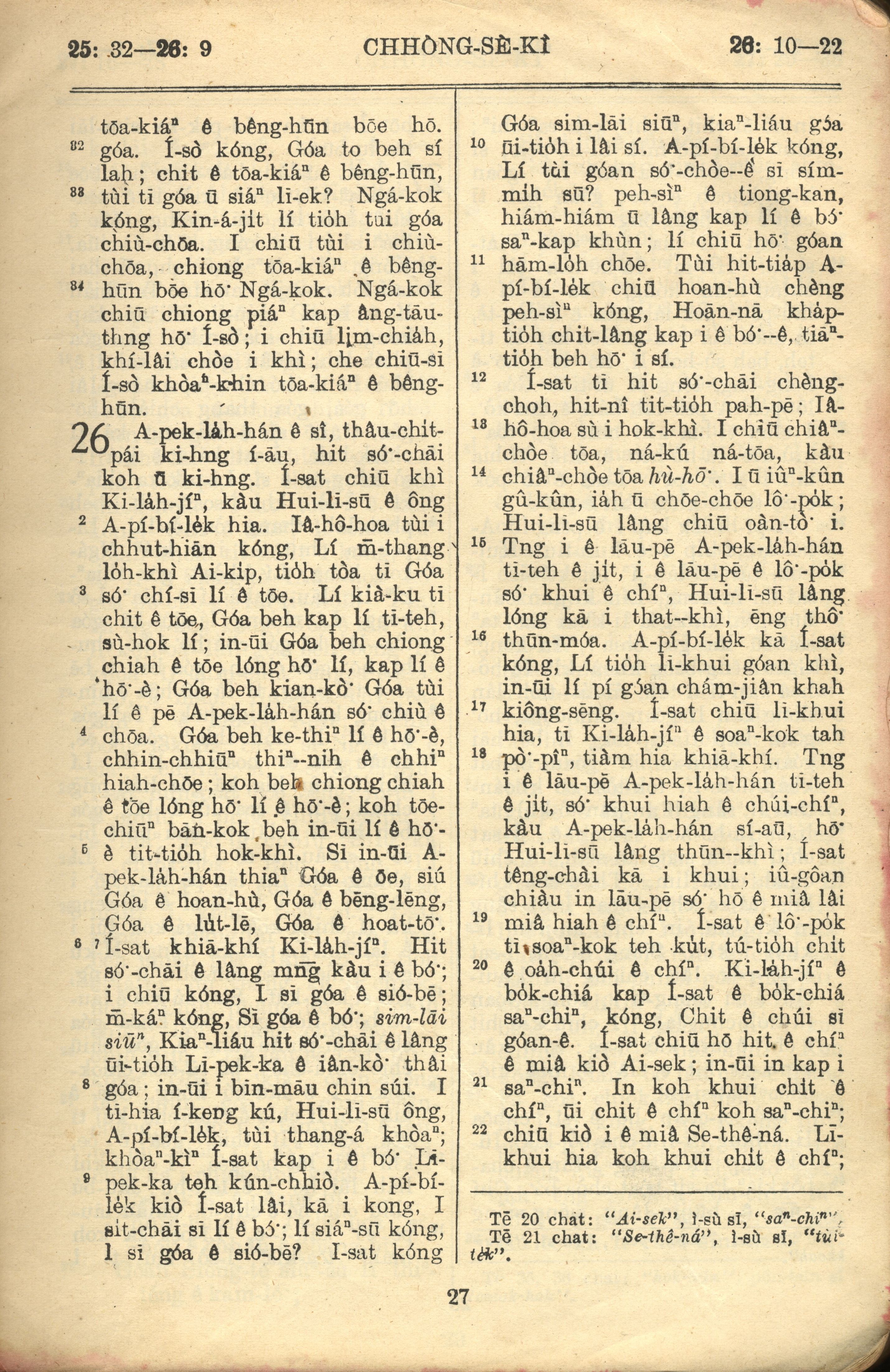 1957年巴克礼全罗台语圣经串珠版 创世记 25 章 32 节到 26 章 22 节