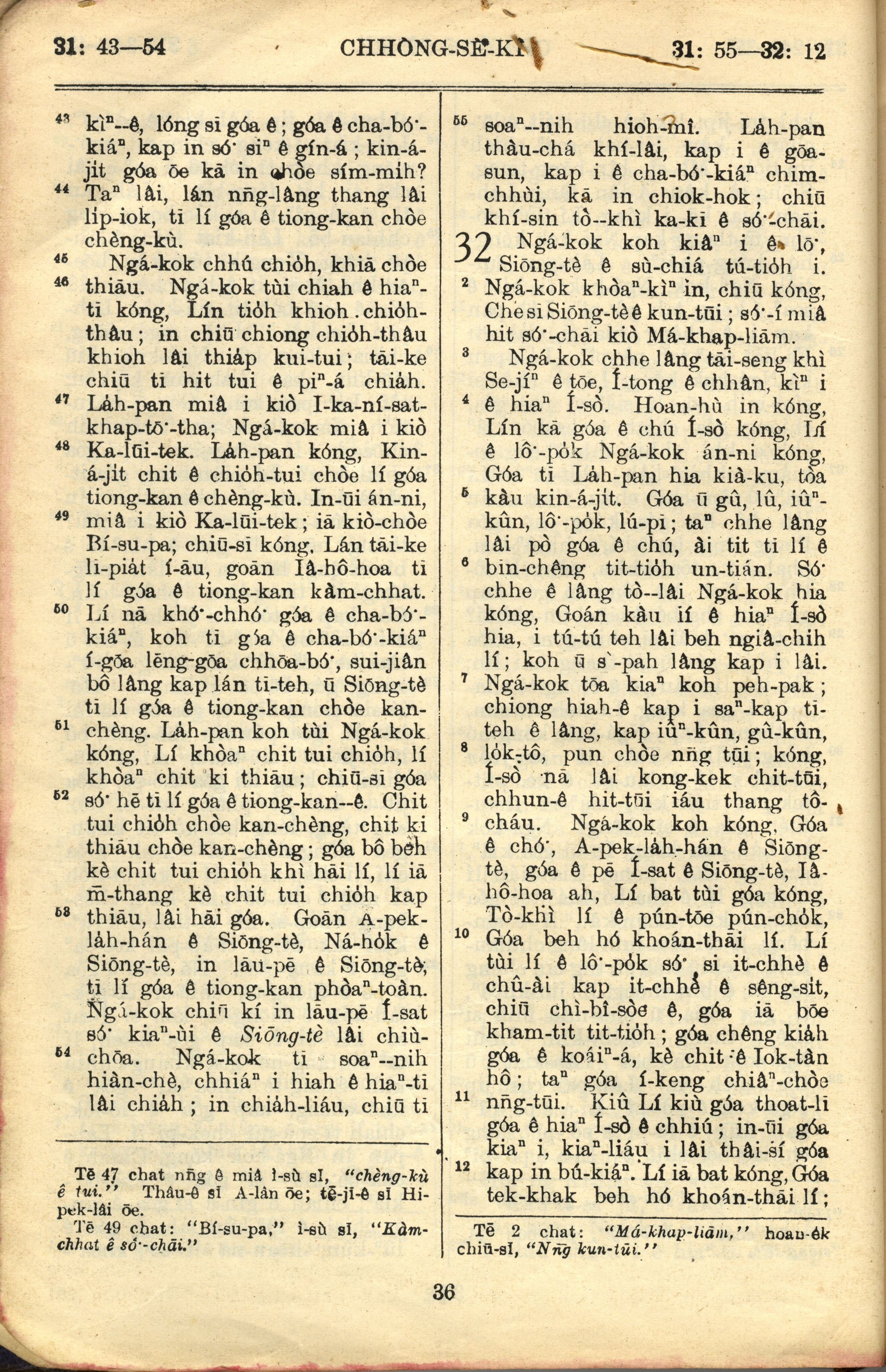 1957年巴克礼全罗台语圣经串珠版 创世记 31 章 43 节到 32 章 12 节
