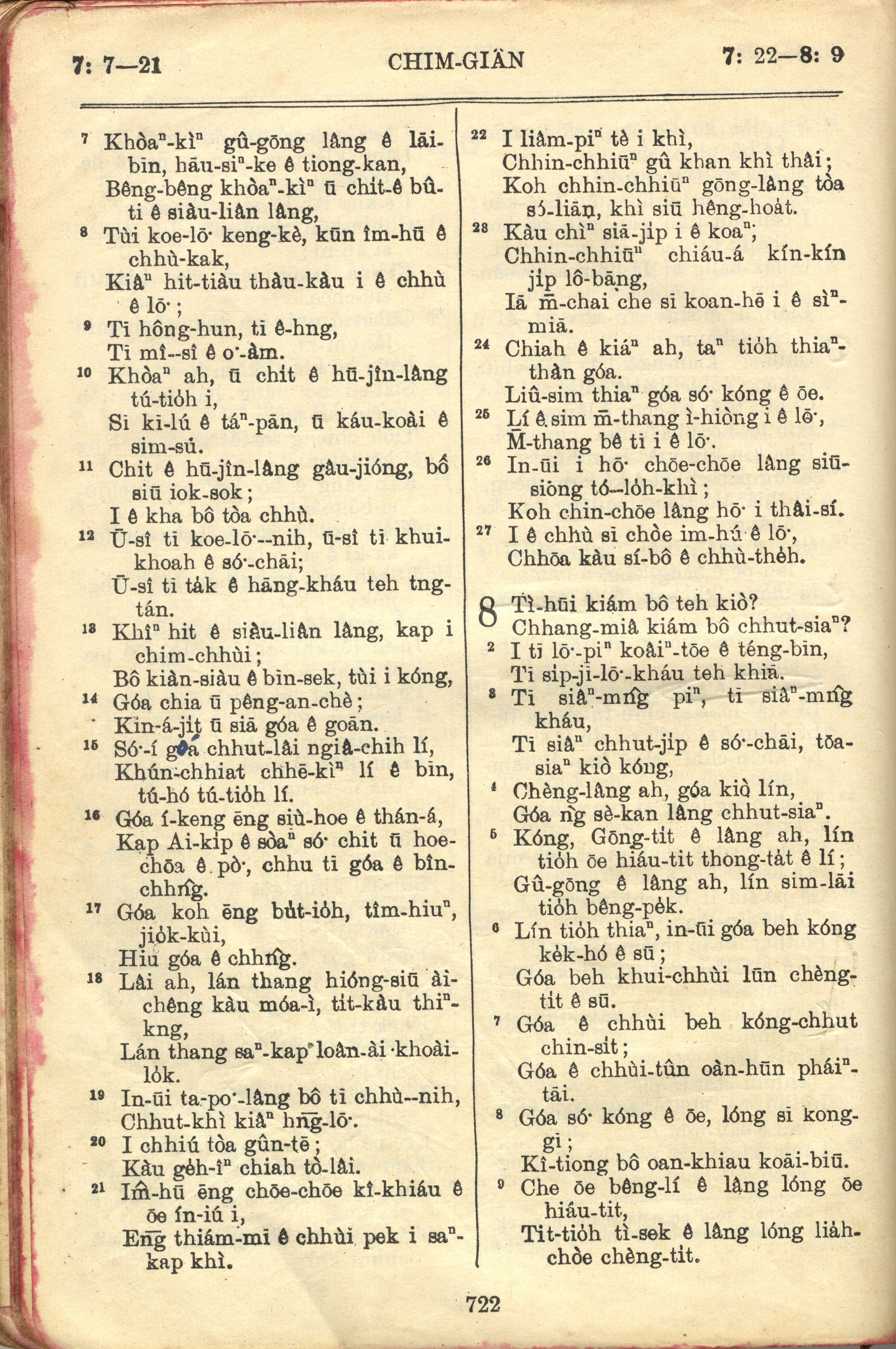 1957年巴克礼全罗台语圣经串珠版 箴言 7 章 7 节到 8 章 9 节