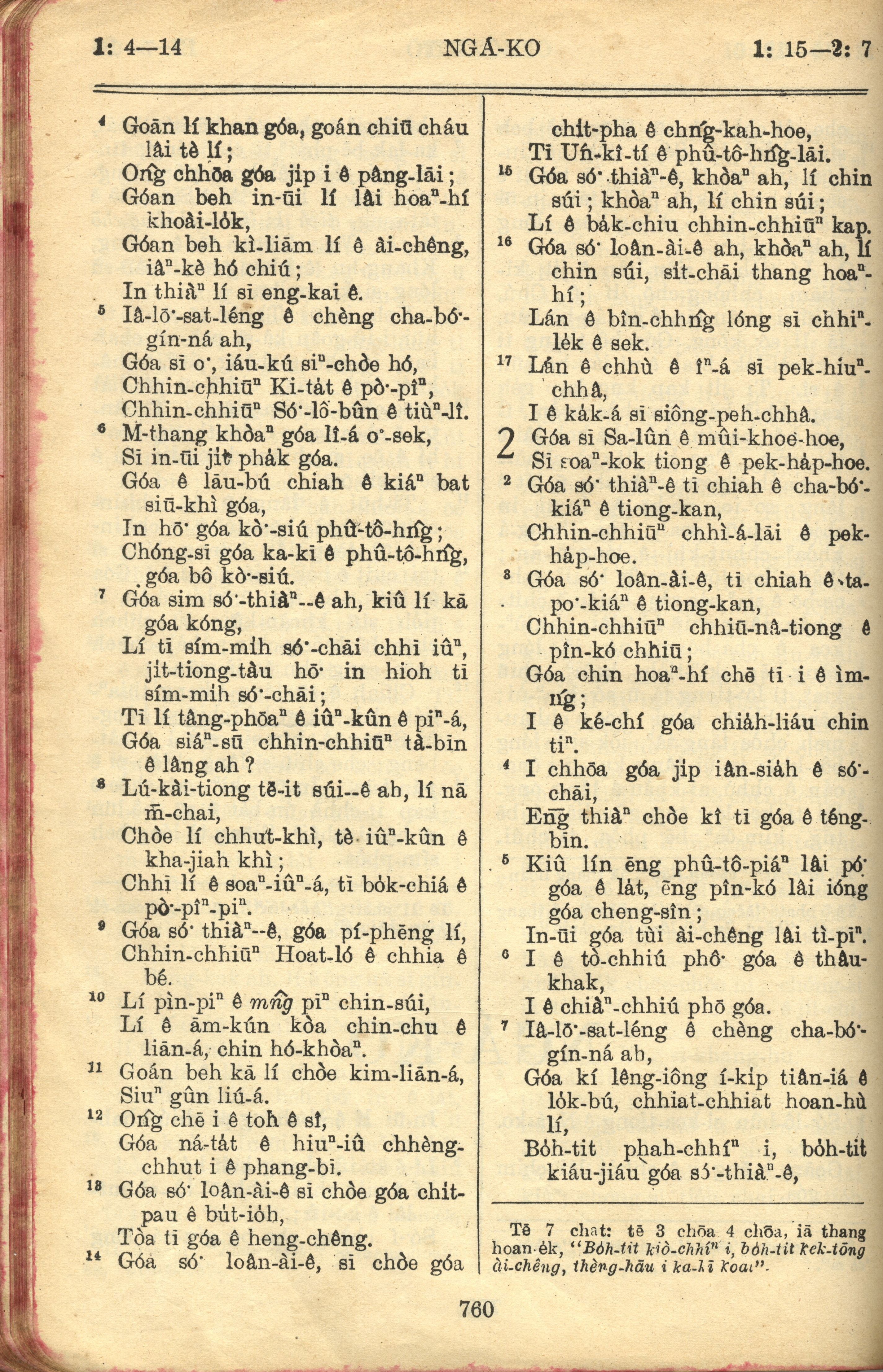 1957年巴克礼全罗台语圣经串珠版 雅歌 1 章 4 节到 2 章 7 节