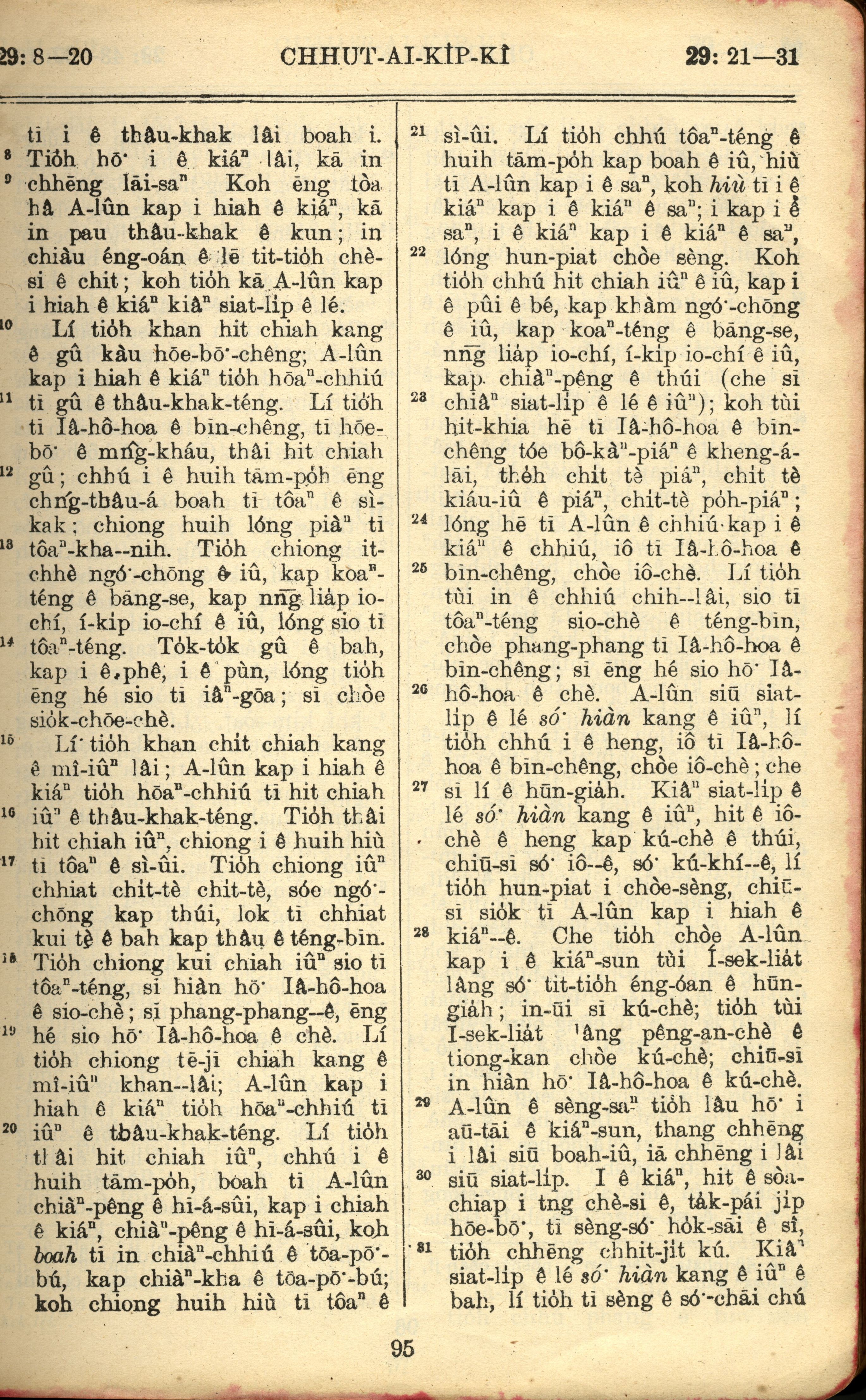 1957年巴克礼全罗台语圣经串珠版 出埃及记 29 章 8 节到 29 章 31 节