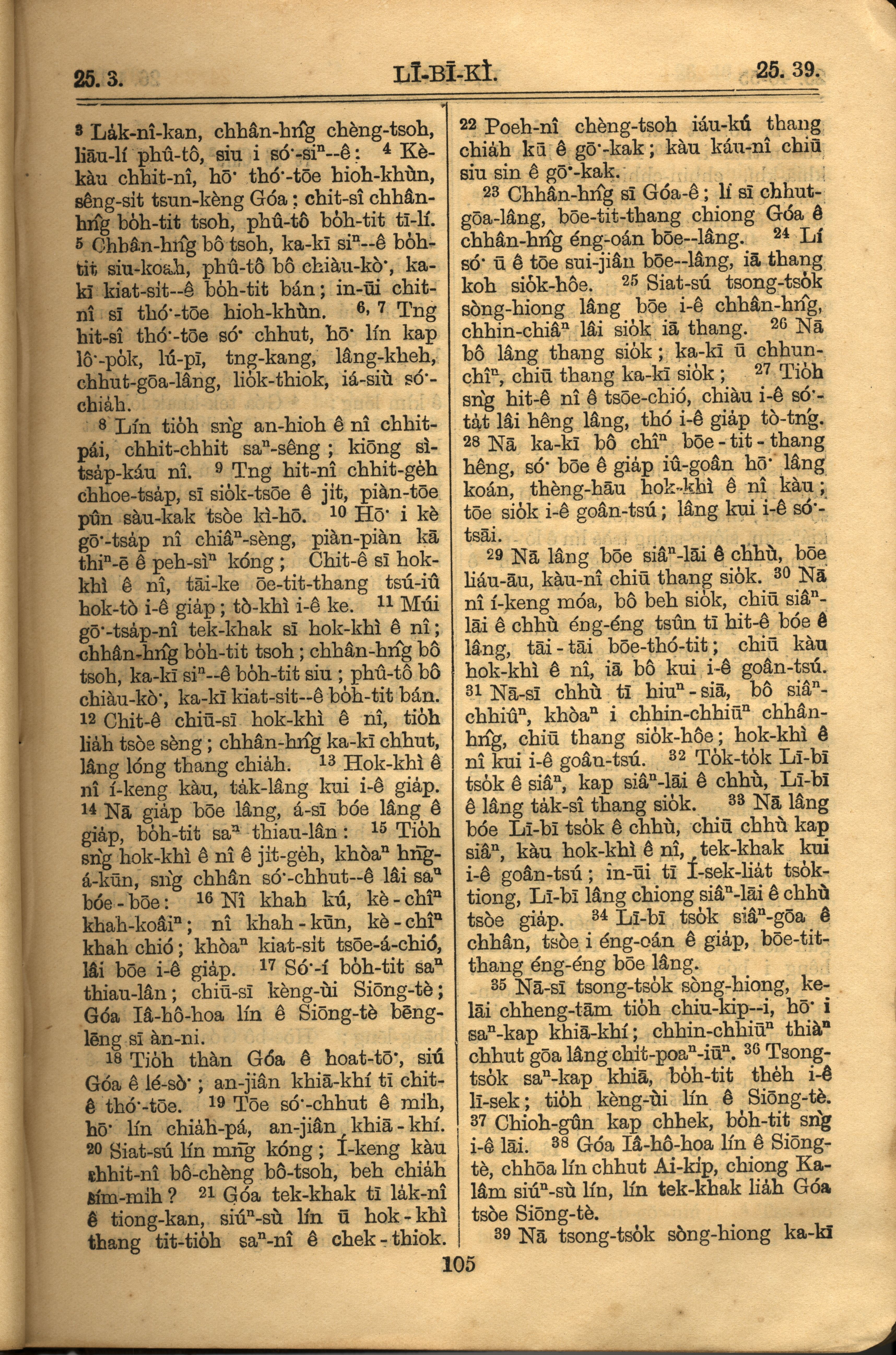 1921年罗马字旧约全书 利未记 25 章 3 节到 25 章 39 节