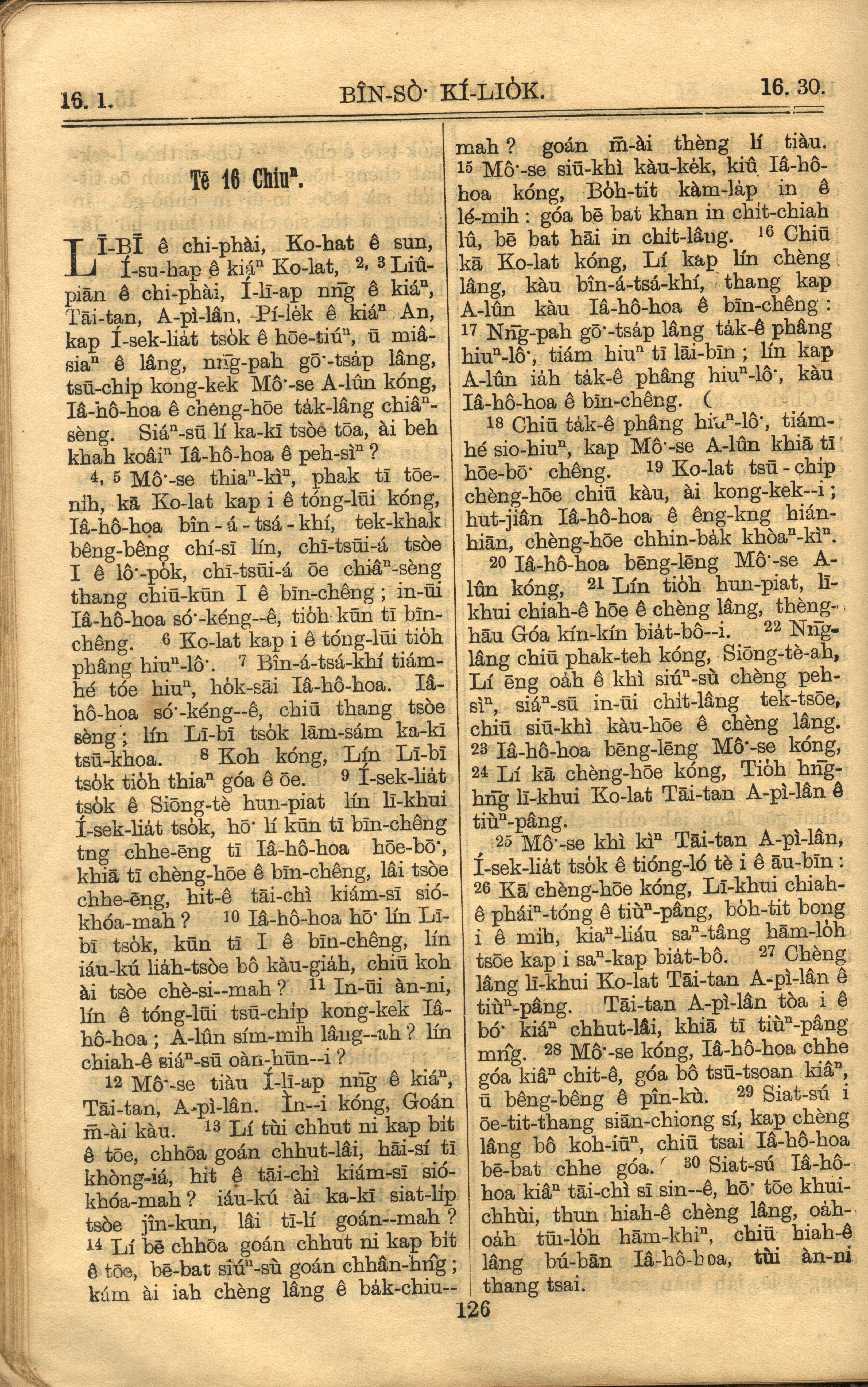 1921年罗马字旧约全书 民数记 16 章 1 节到 16 章 30 节