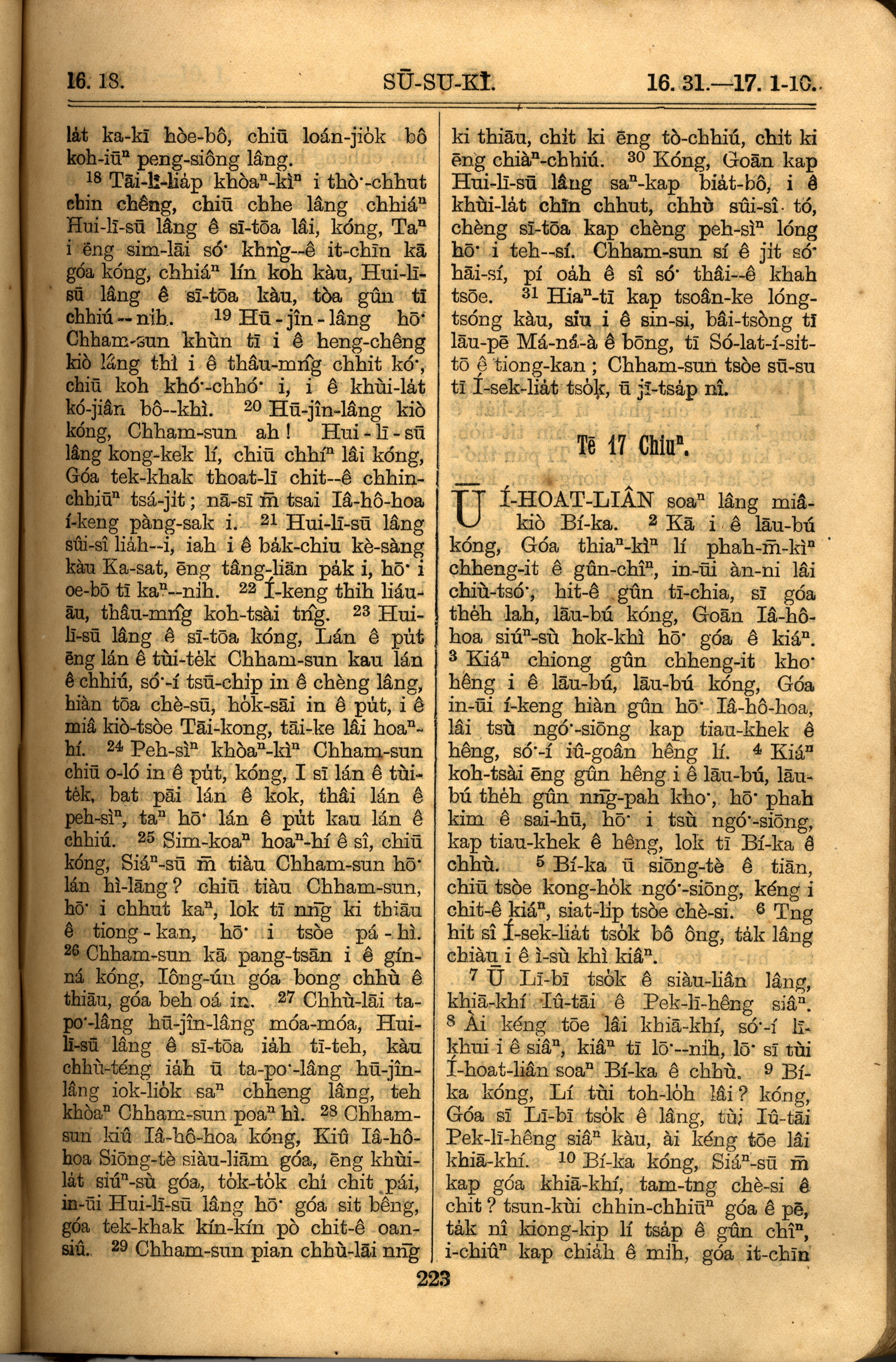 1921年罗马字旧约全书 士师记 16 章 18 节到 17 章 10 节