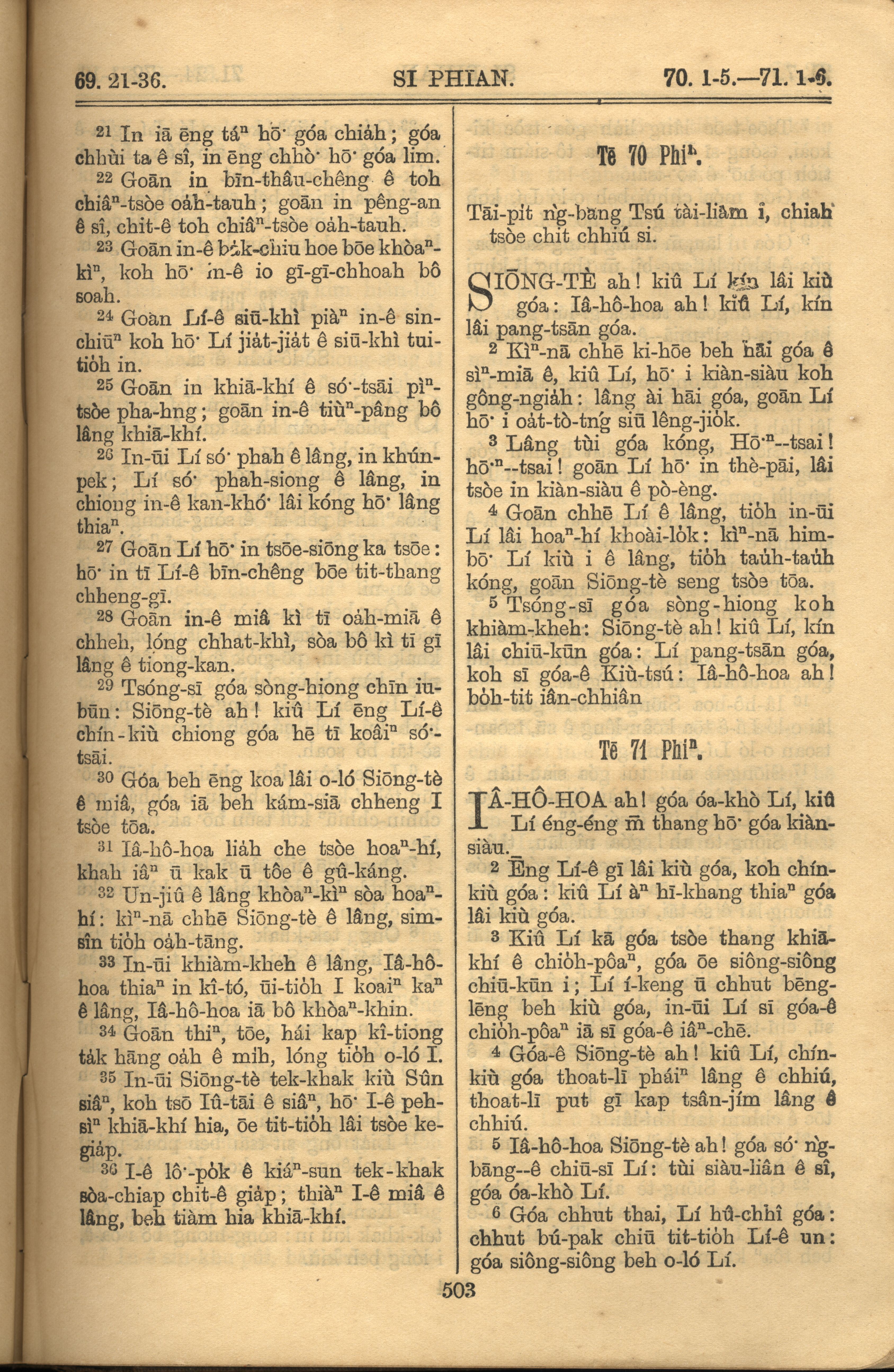 1921年罗马字旧约全书 诗篇 69 章 21 节到 71 章 6 节