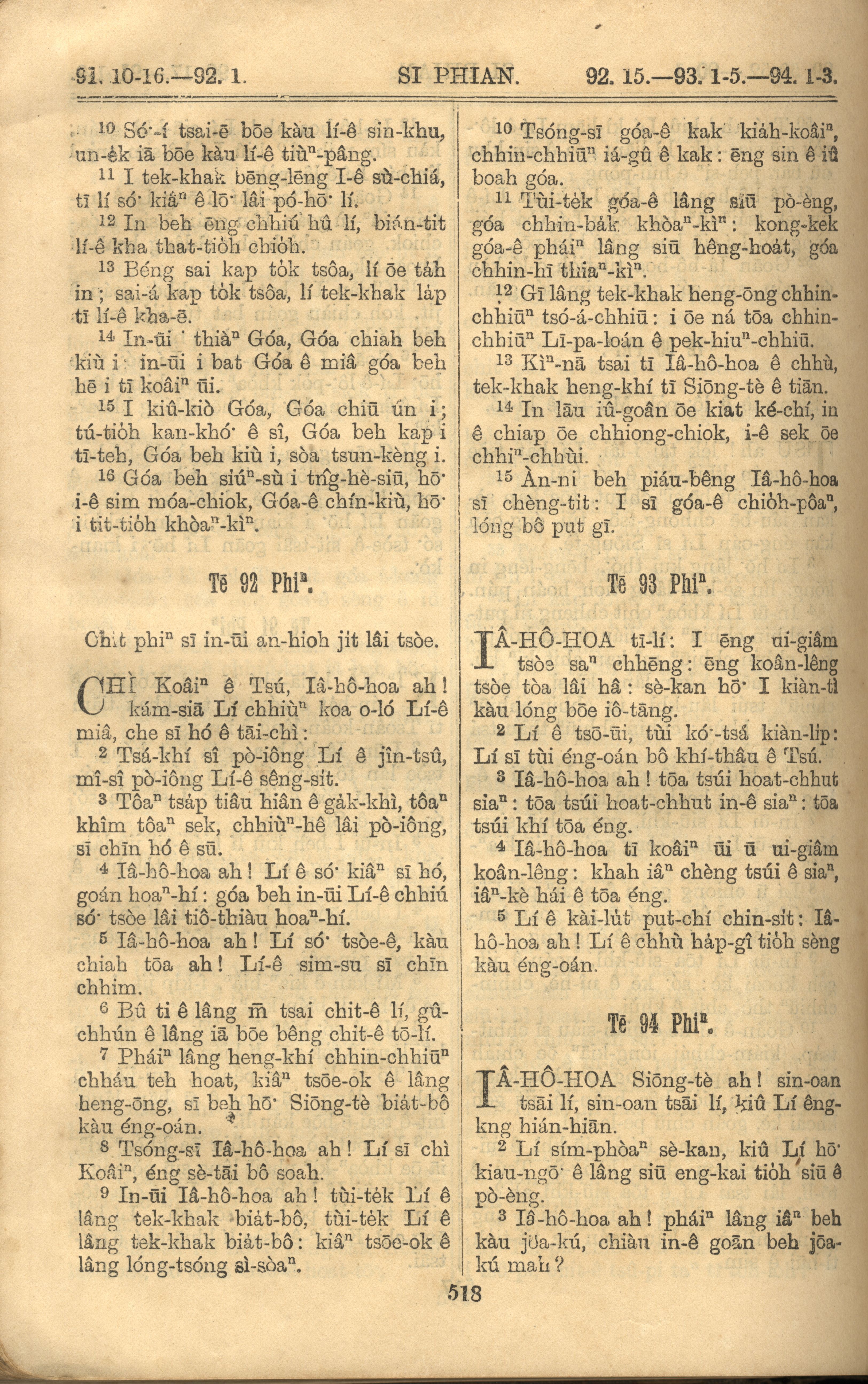 1921年罗马字旧约全书 诗篇 91 章 10 节到 94 章 3 节
