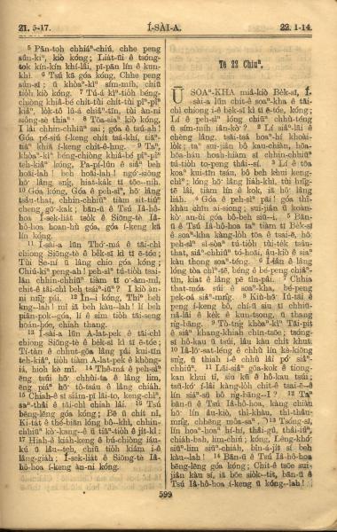 1921年罗马字旧约全书 以赛亚书 21 章 5 节到 22 章 14 节