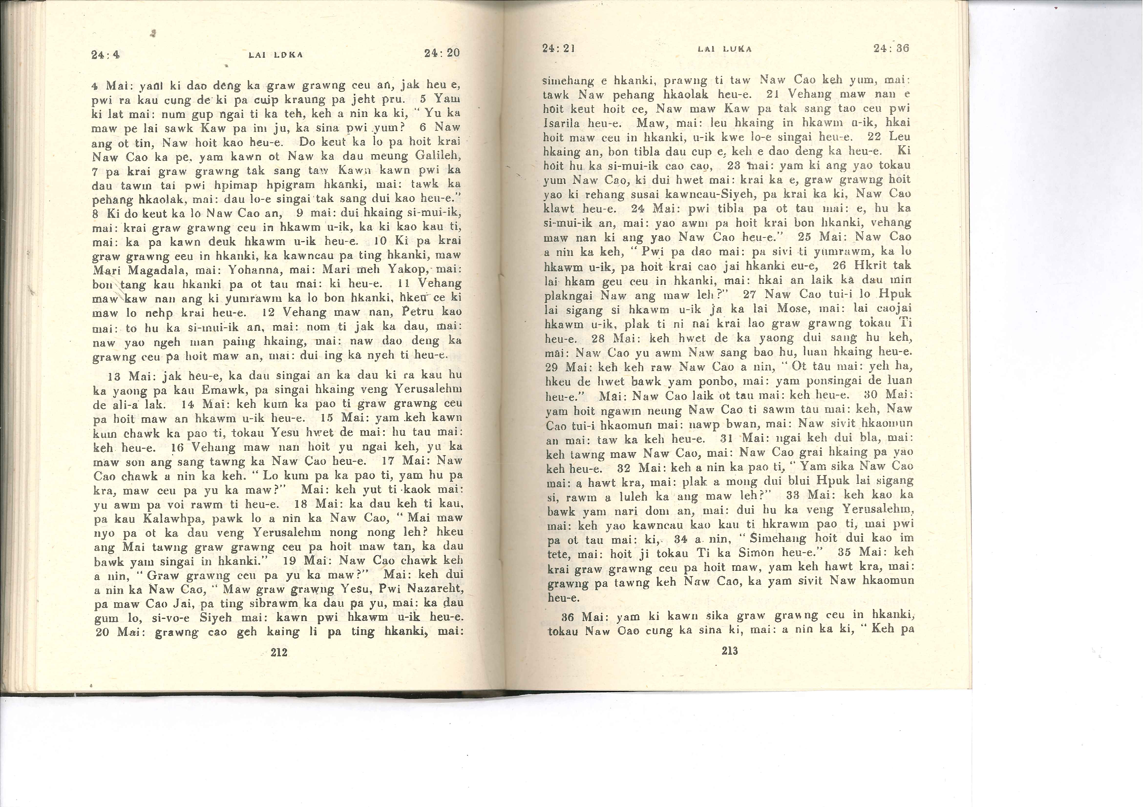 1985年佤文新约全书 路加福音 24 章 4 节到 24 章 36 节