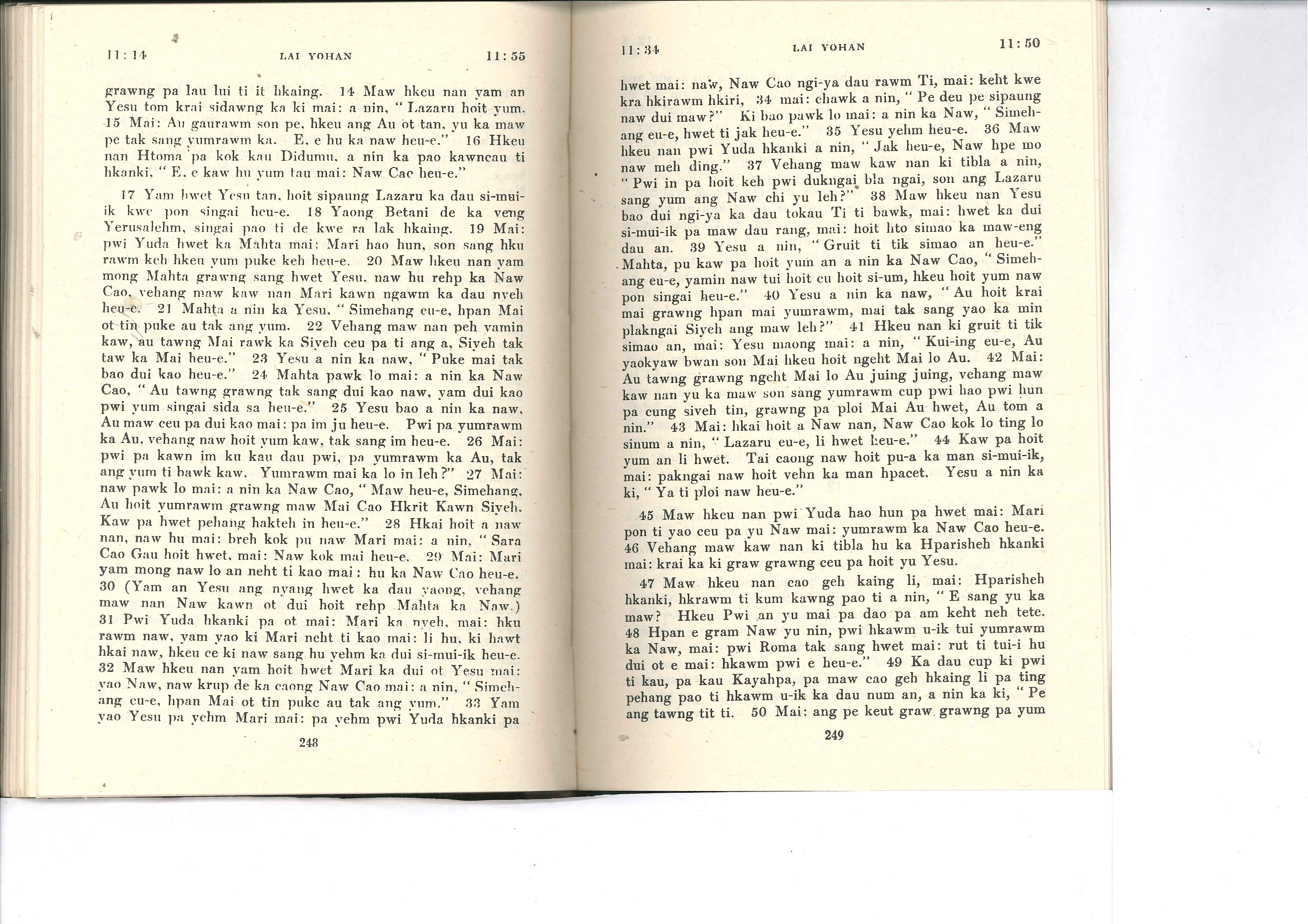 1985年佤文新约全书 约翰福音 11 章 14 节到 11 章 50 节