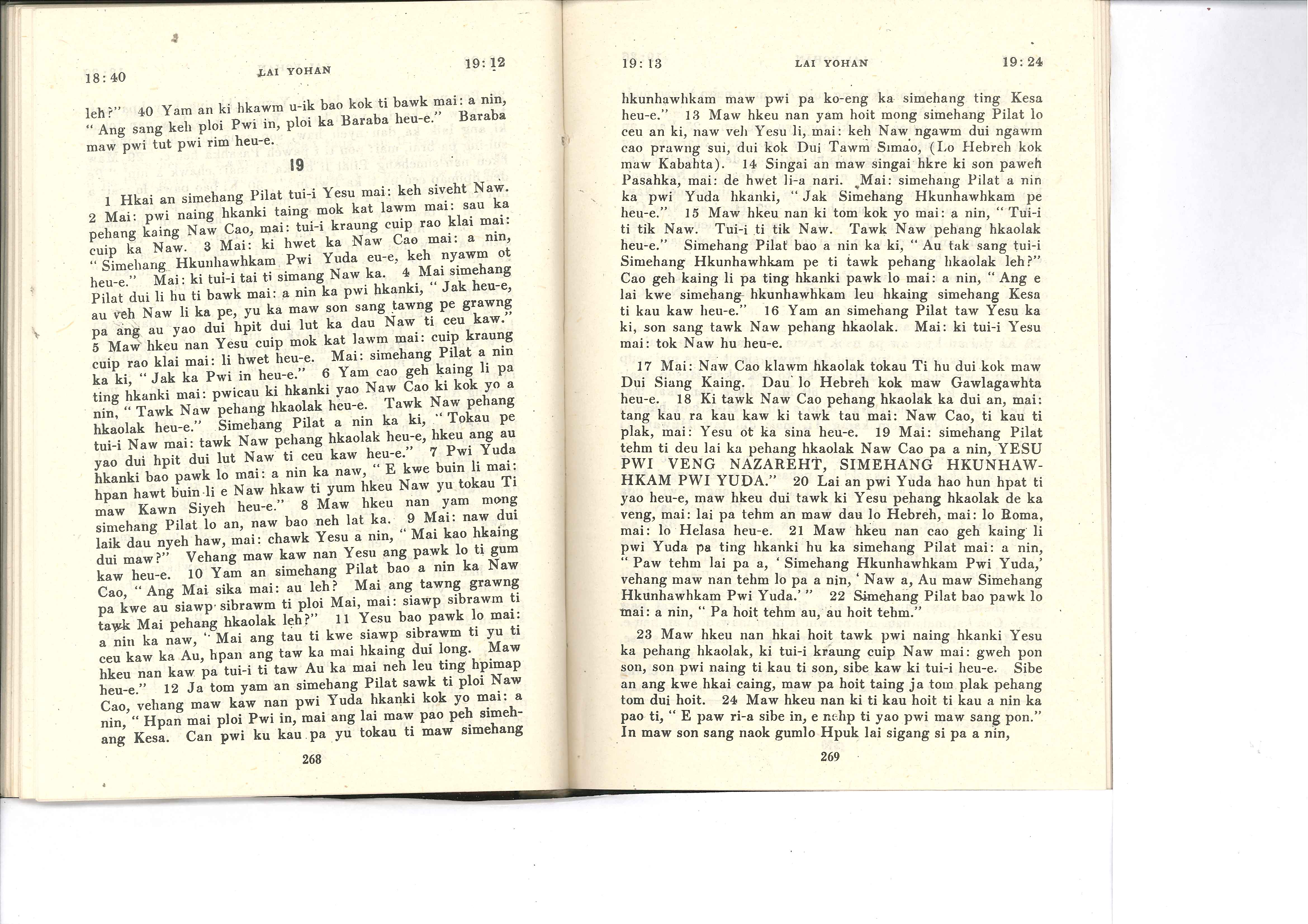 1985年佤文新约全书 约翰福音 18 章 40 节到 19 章 24 节