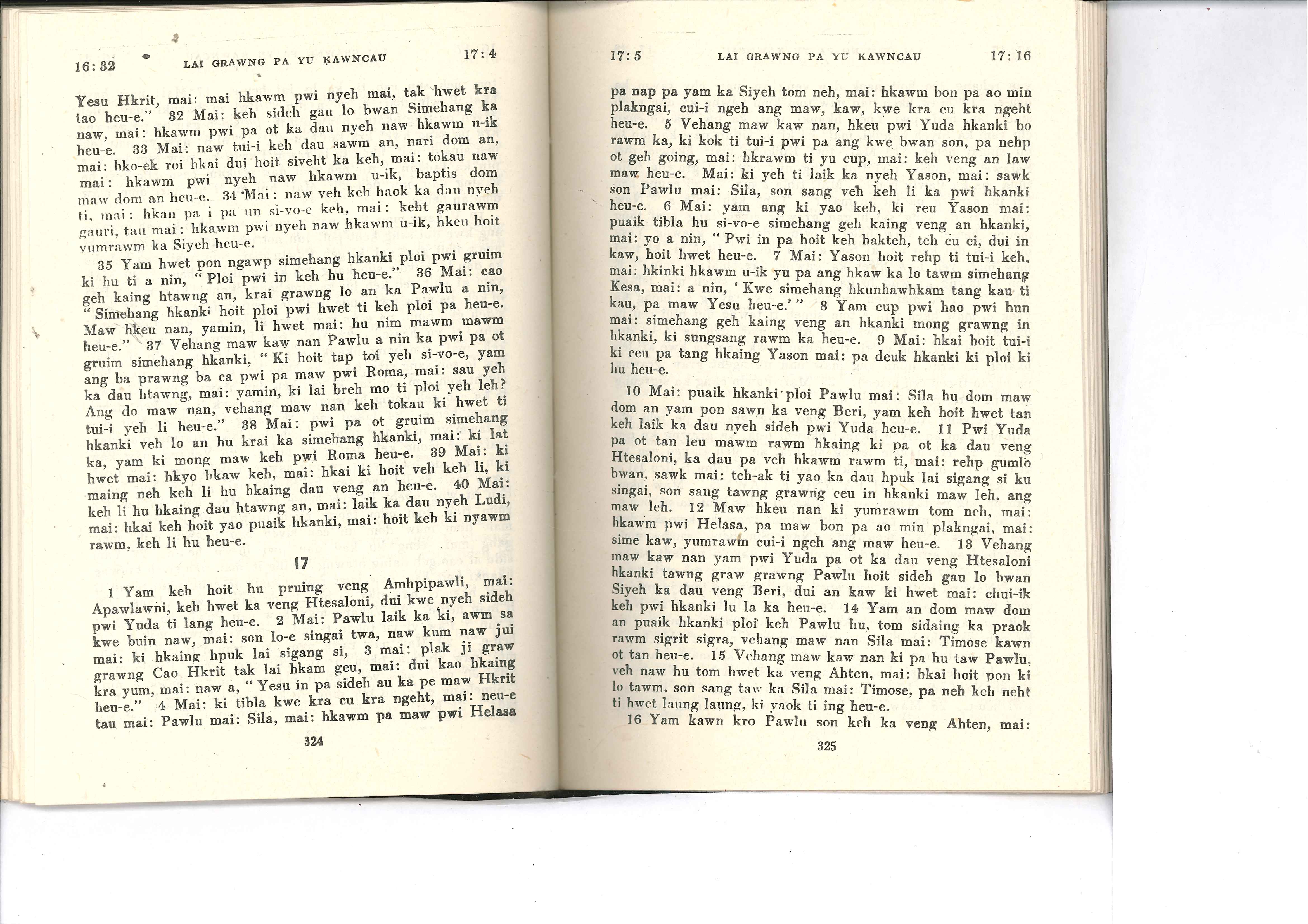 1985年佤文新约全书 使徒行传 16 章 32 节到 17 章 16 节