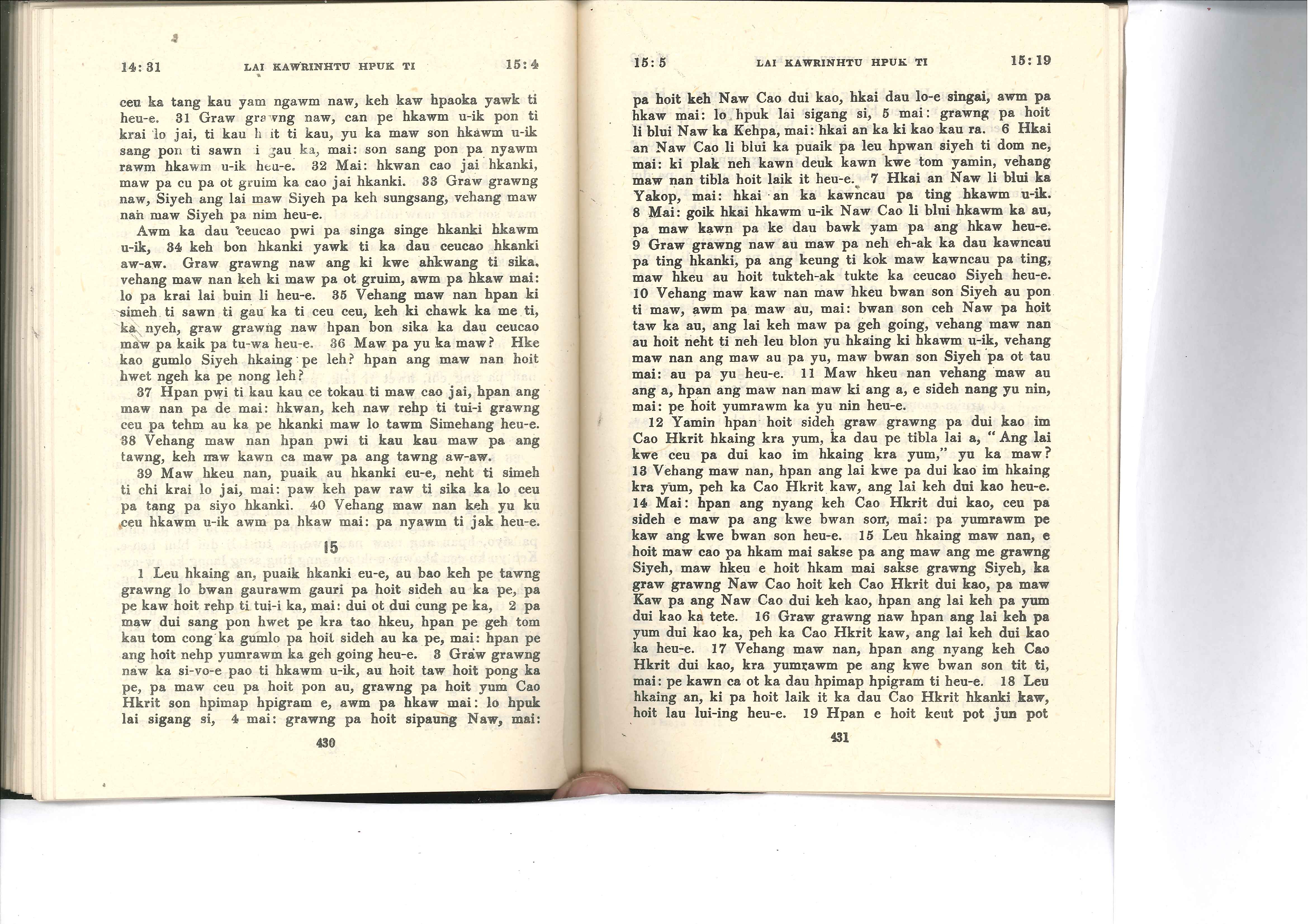 1985年佤文新约全书 哥林多前书 14 章 31 节到 15 章 19 节