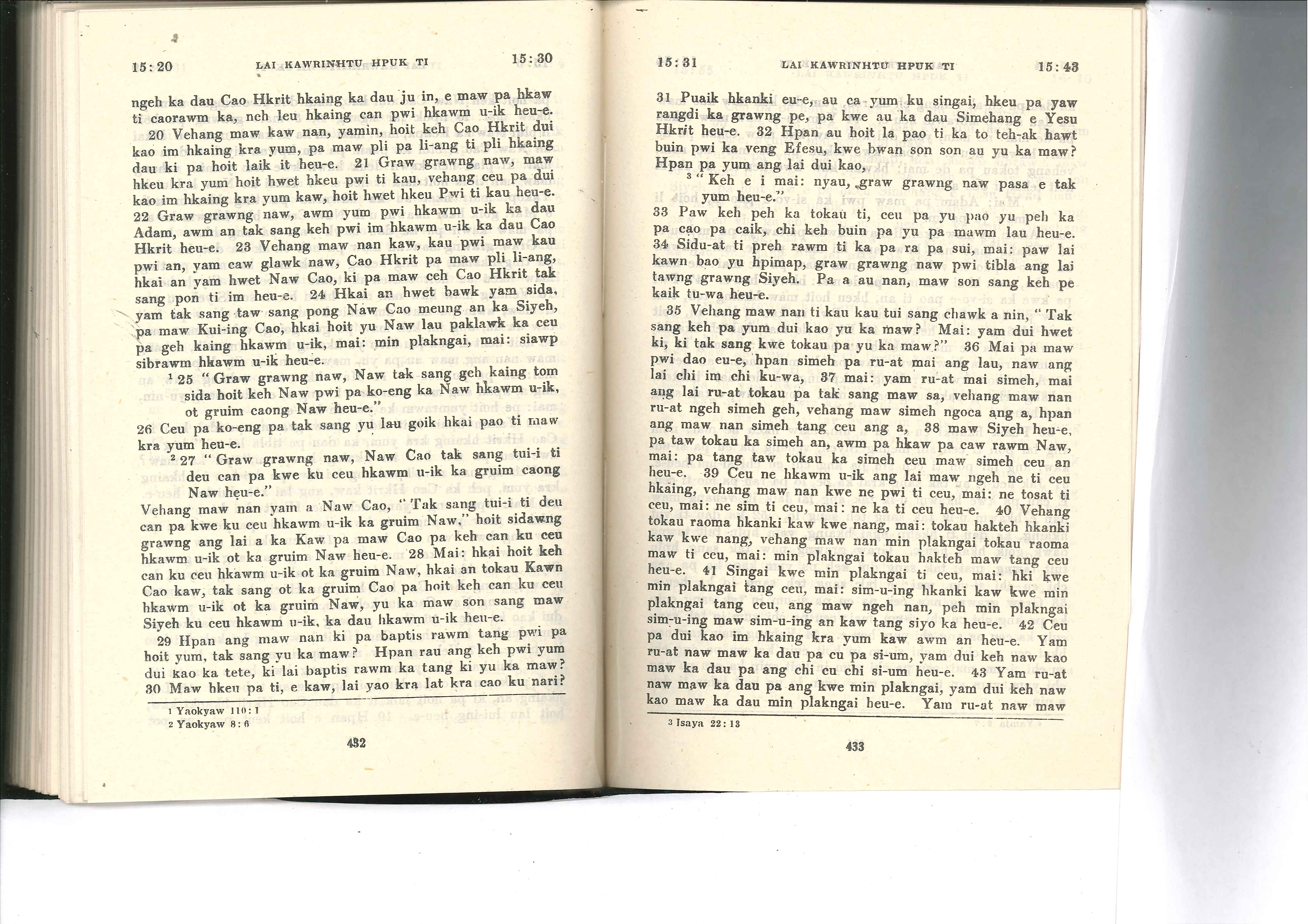1985年佤文新约全书 哥林多前书 15 章 20 节到 15 章 43 节