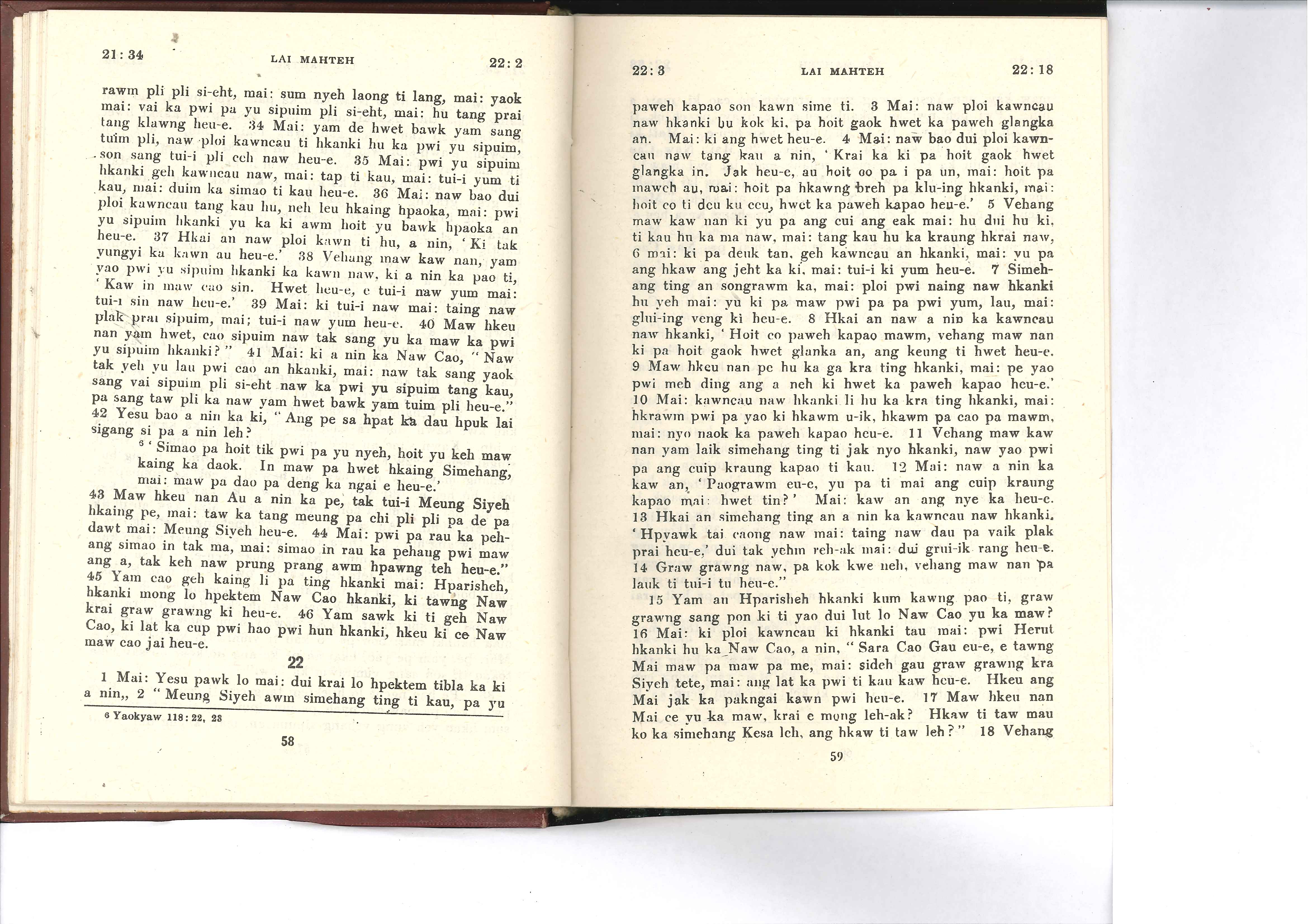 1985年佤文新约全书 马太福音 21 章 34 节到 22 章 18 节