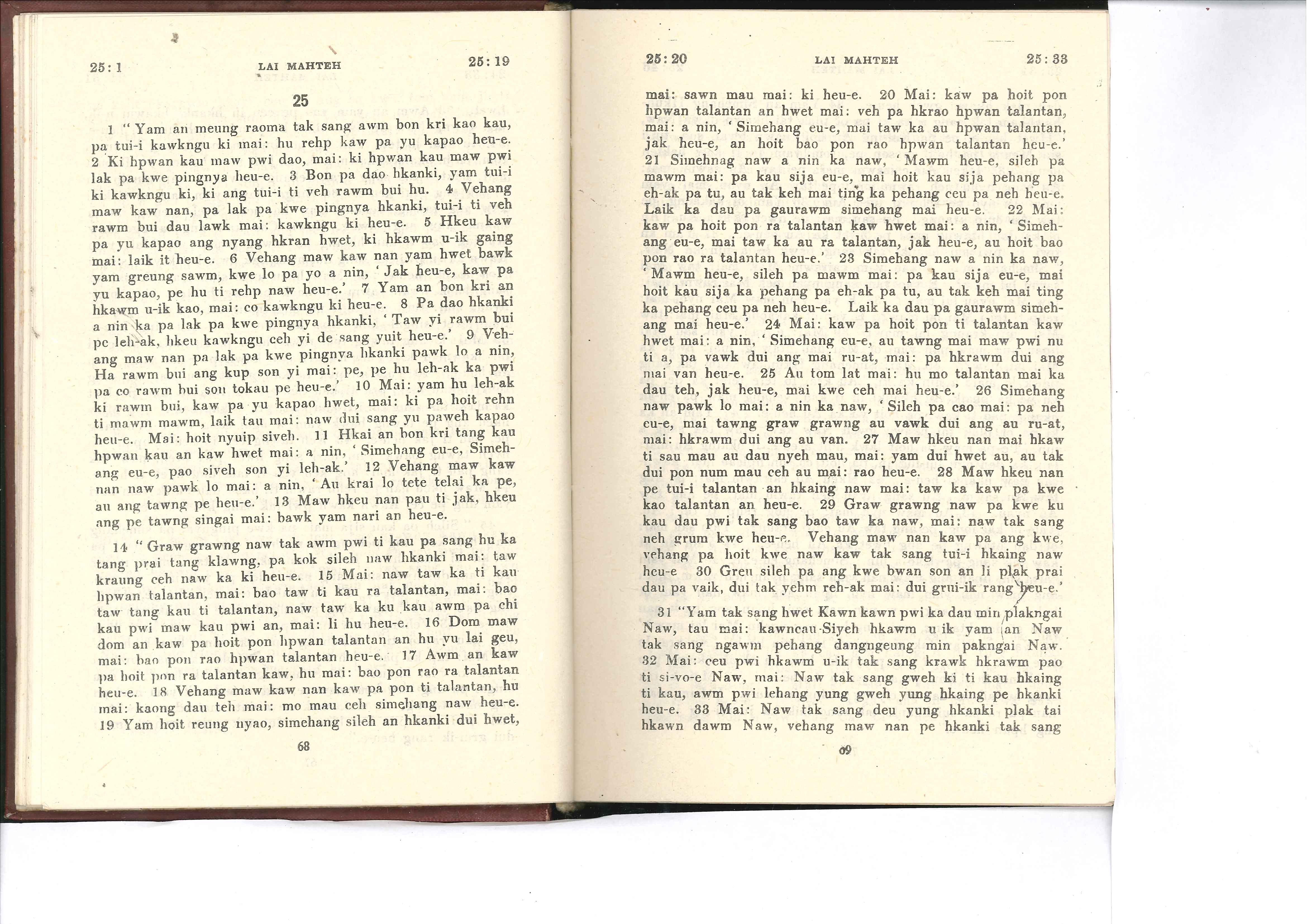 1985年佤文新约全书 马太福音 25 章 1 节到 25 章 33 节