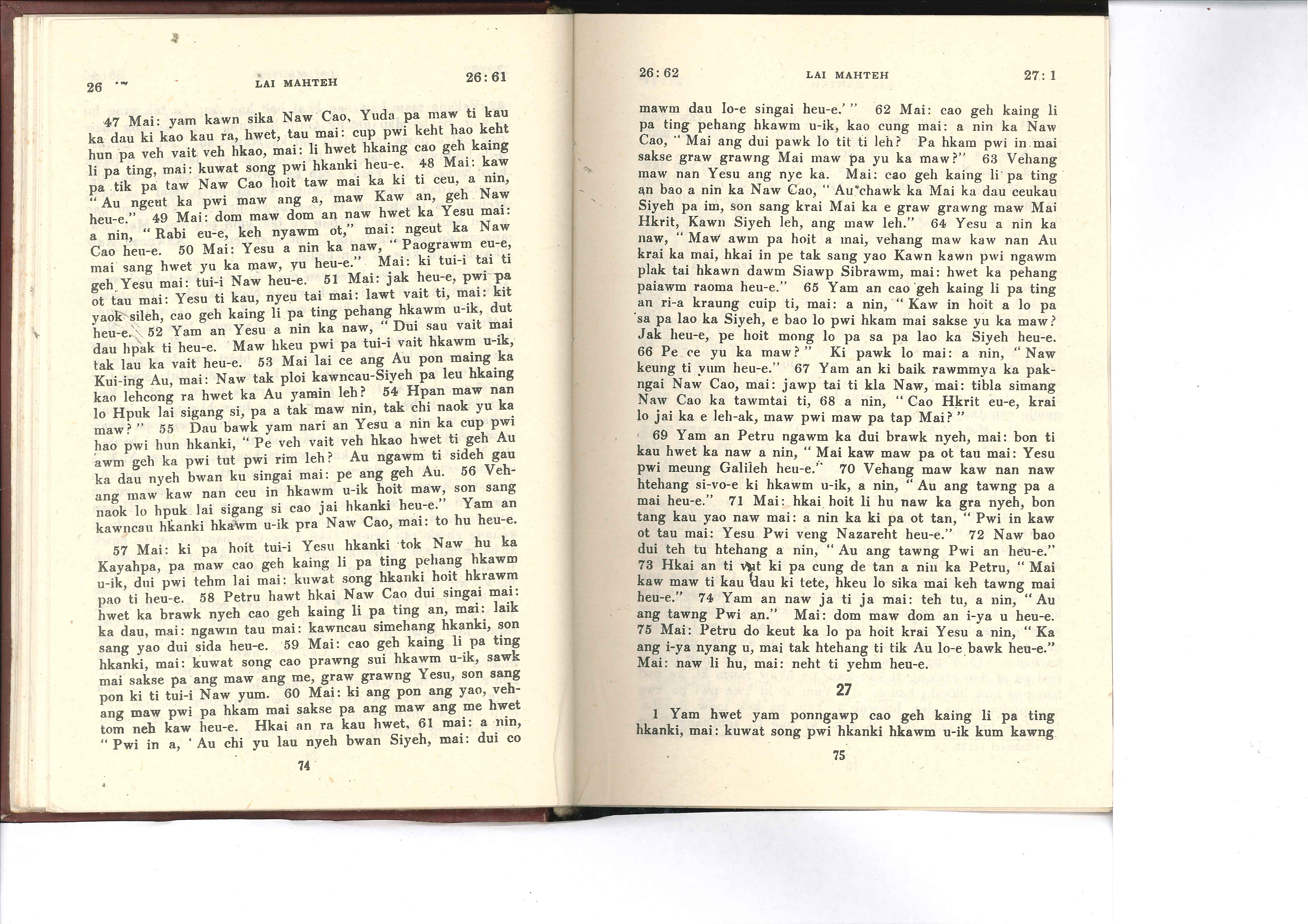 1985年佤文新约全书 马太福音 26 章 47 节到 27 章 1 节