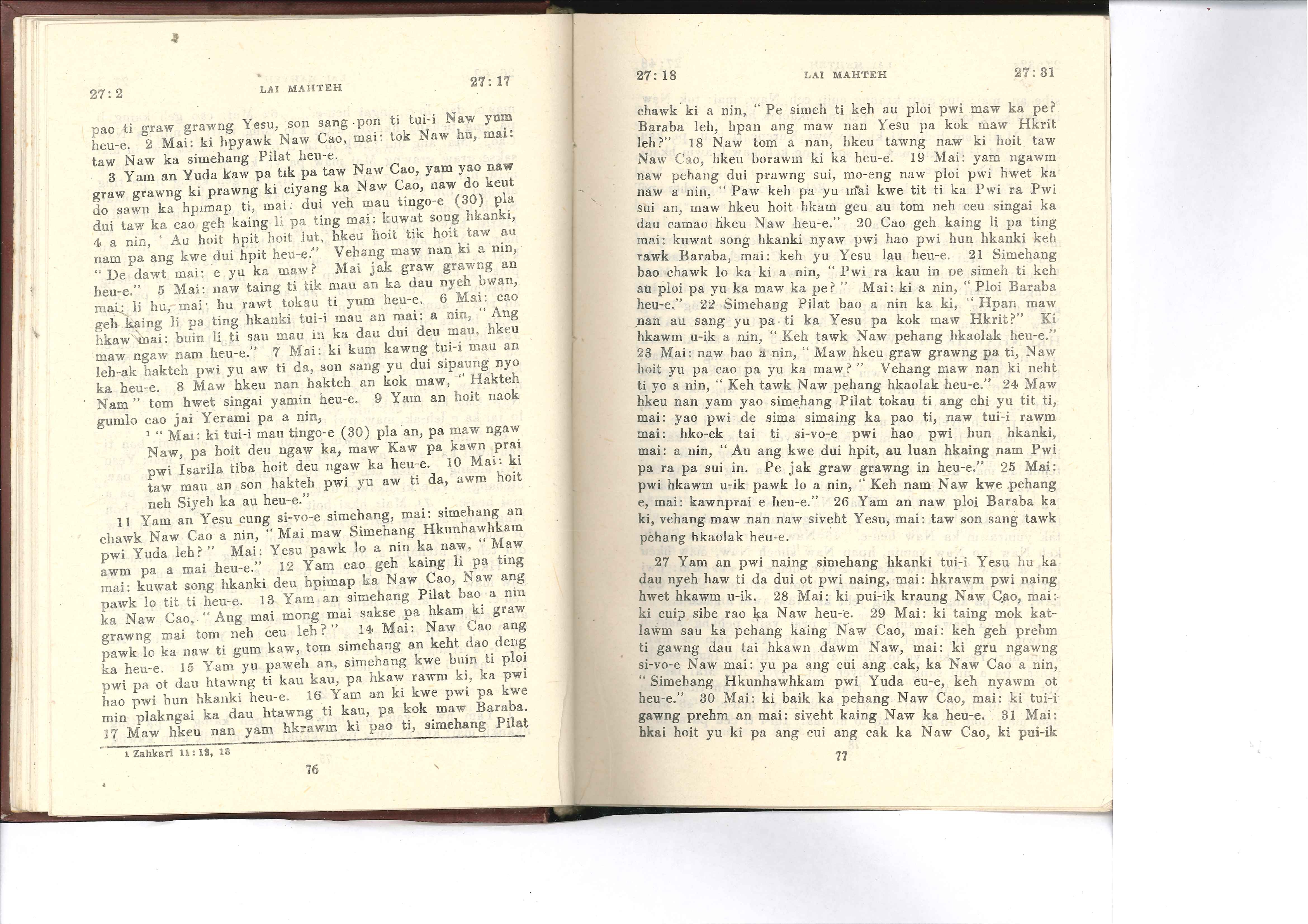 1985年佤文新约全书 马太福音 27 章 2 节到 27 章 31 节