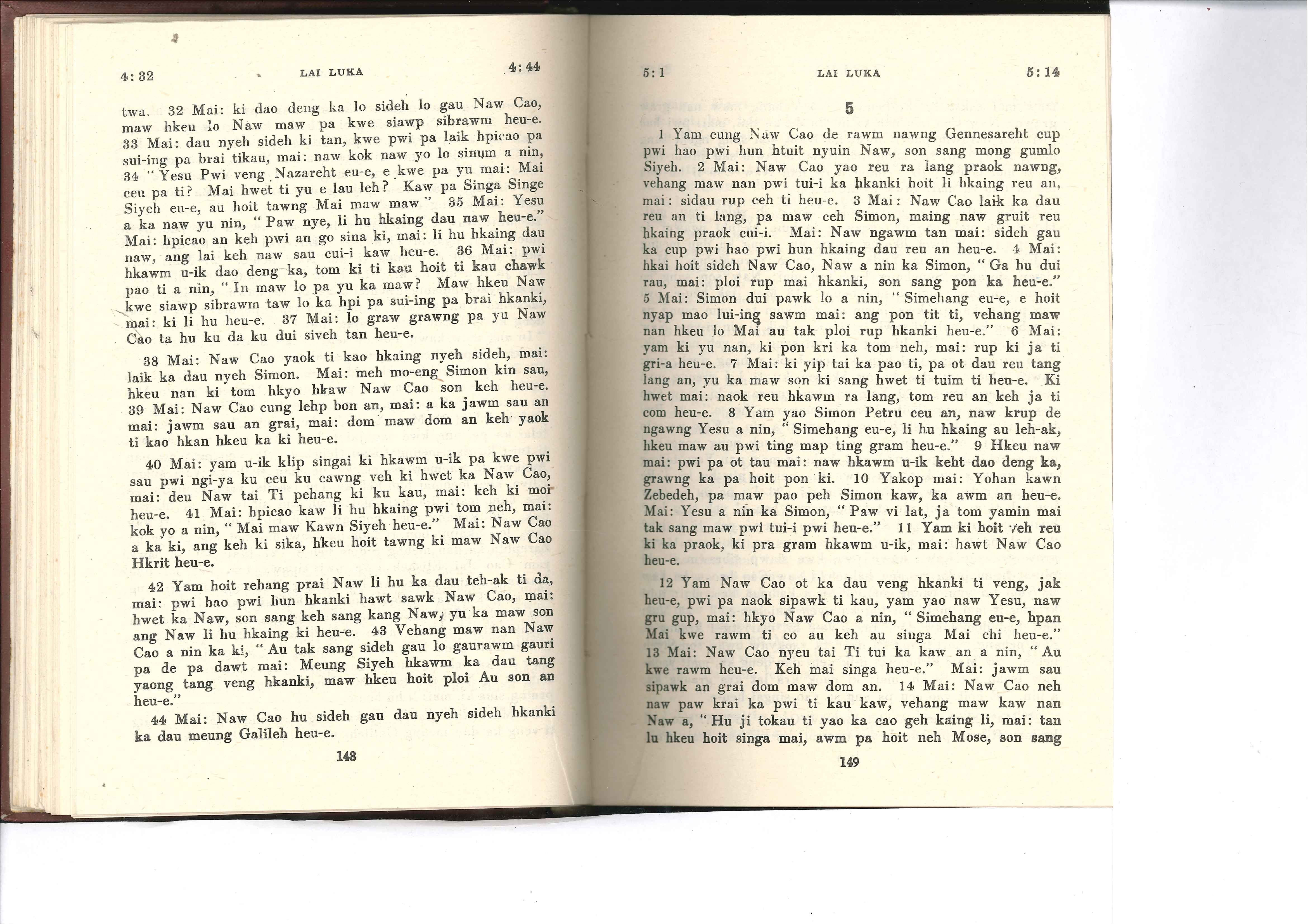 1985年佤文新约全书 路加福音 4 章 32 节到 5 章 14 节