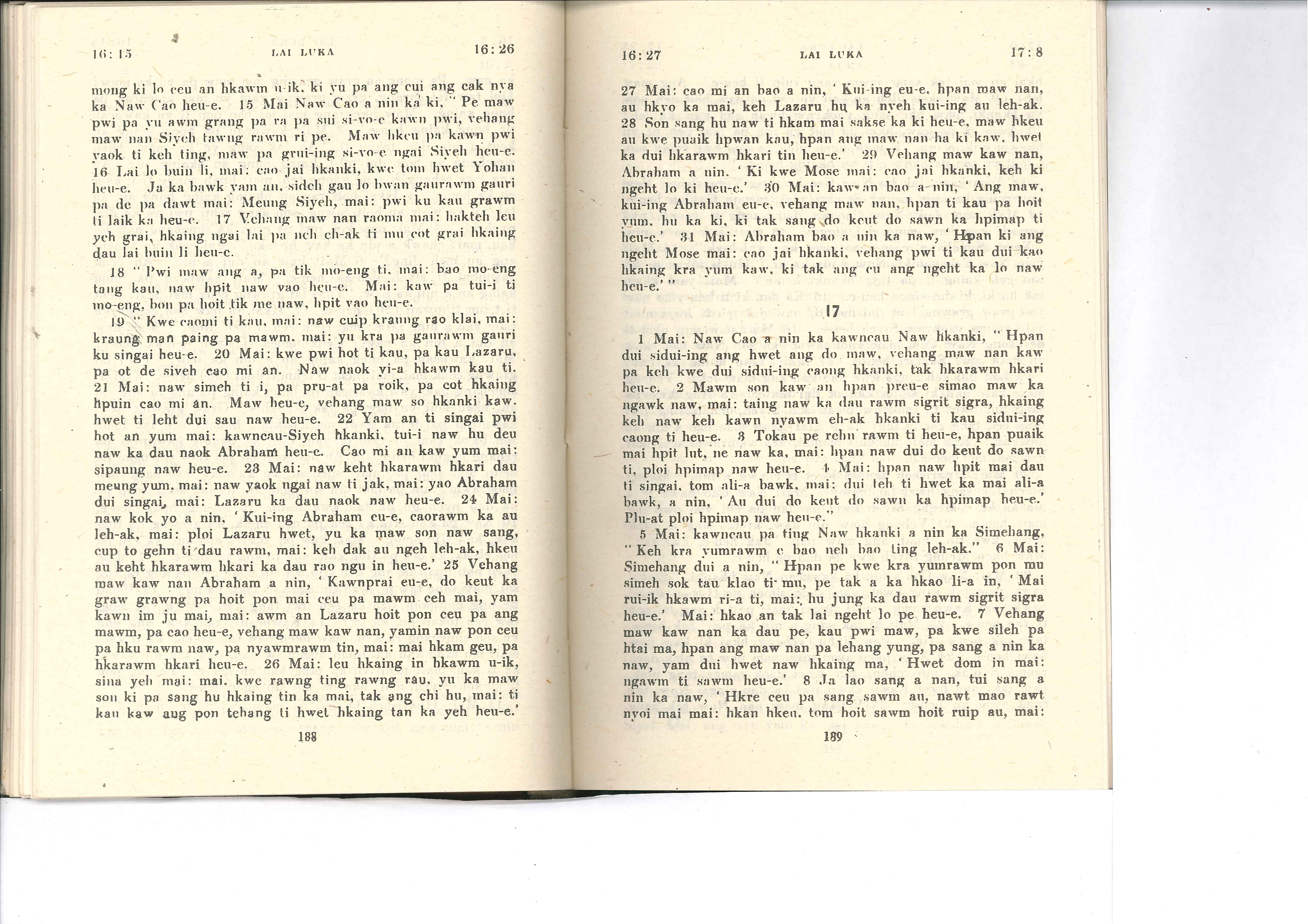 1985年佤文新约全书 路加福音 16 章 15 节到 17 章 8 节
