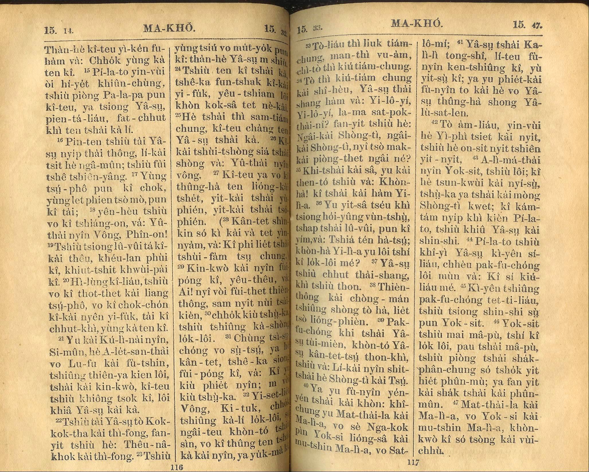 1924年新约全书 马可福音 15 章 14 节到 15 章 47 节