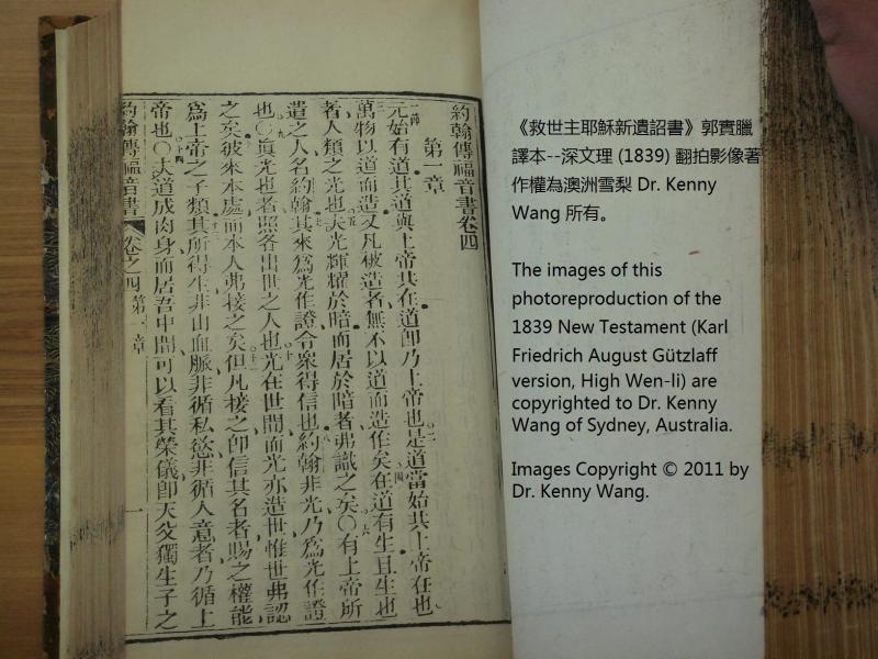 1839年新約全書(救世主耶穌新遺詔書) 約翰福音 1 章 1 節到 1 章 14 節