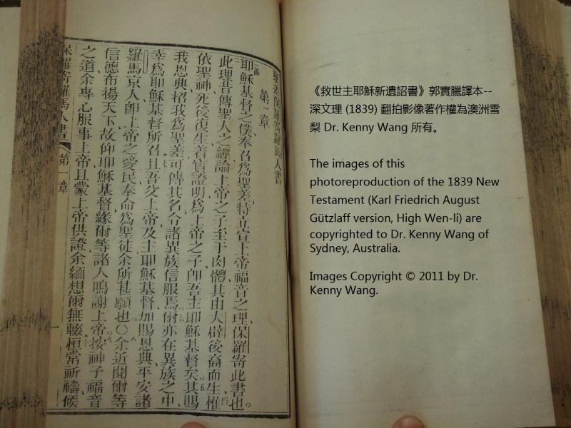 1839年新約全書(救世主耶穌新遺詔書) 羅馬書 1 章 1 節到 1 章 10 節