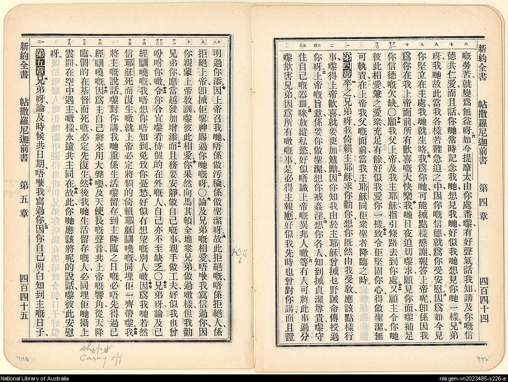 1906年新約全書 帖撒羅尼迦前書 3 章 6 節到 5 章 2 節