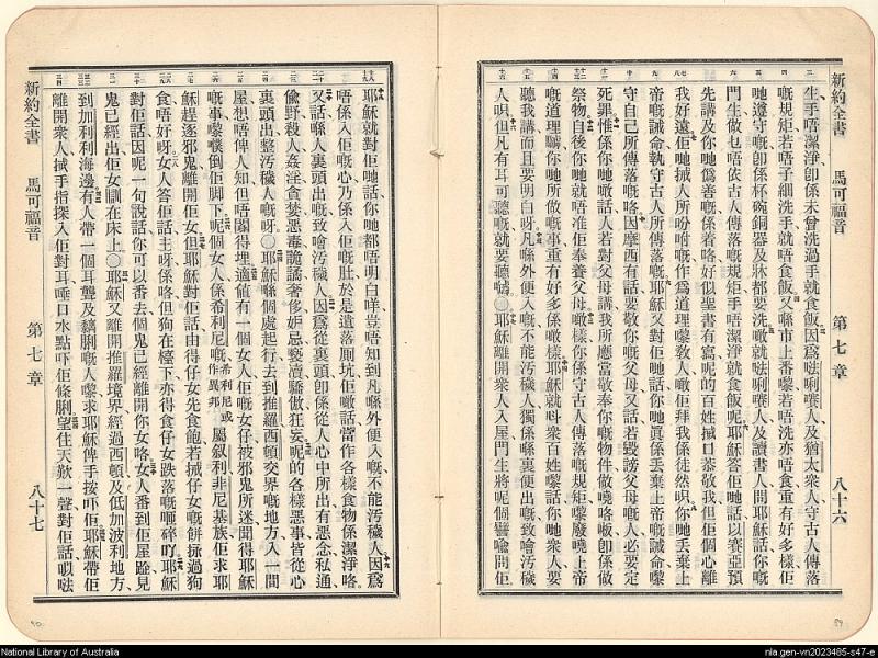 1906年新約全書 馬可福音 7 章 3 節到 7 章 34 節