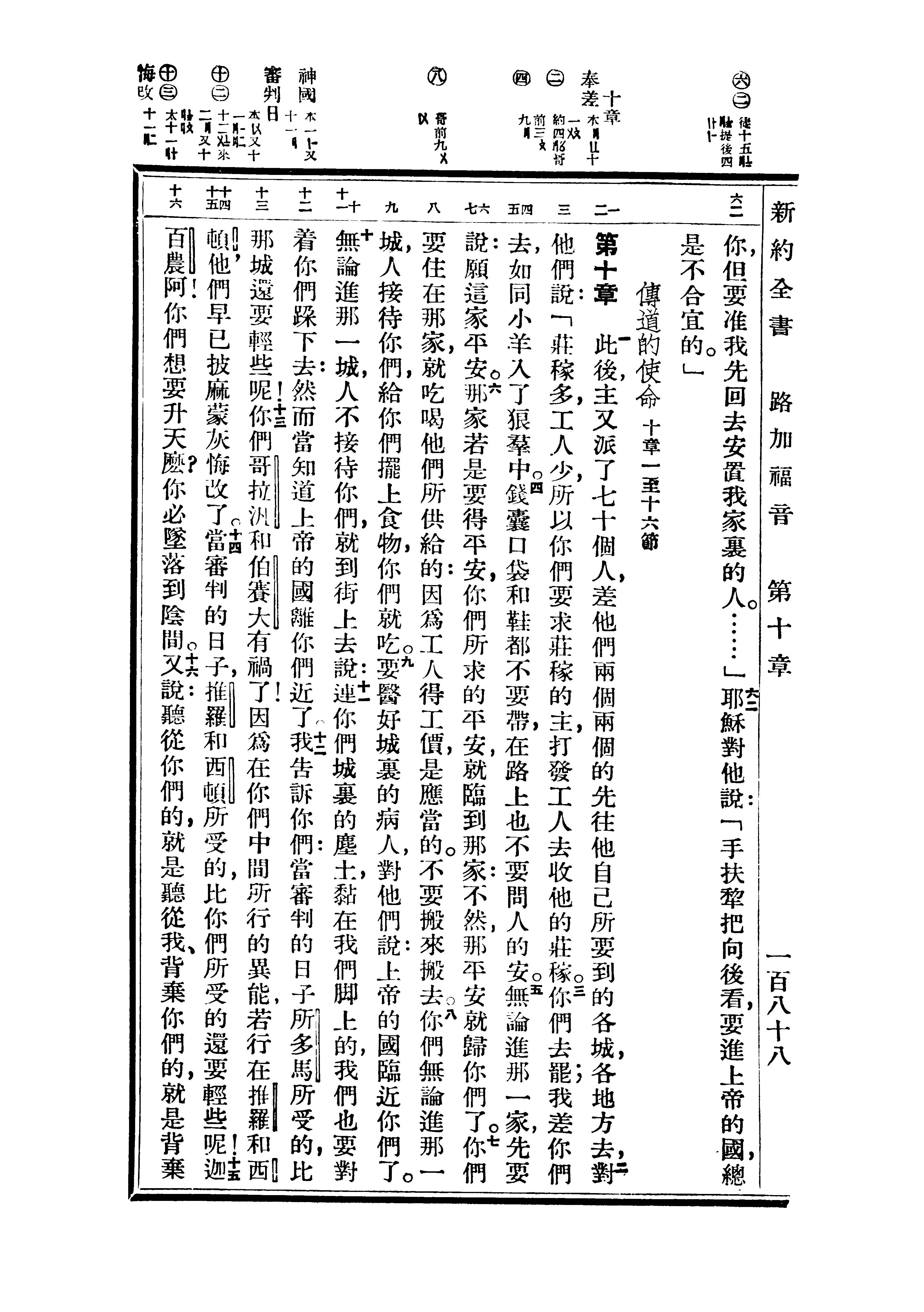 1936年重譯新約全書 路加福音 9 章 62 節到 10 章 16 節