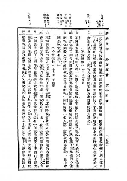 1936年重譯新約全書 路加福音 14 章 9 節到 14 章 23 節