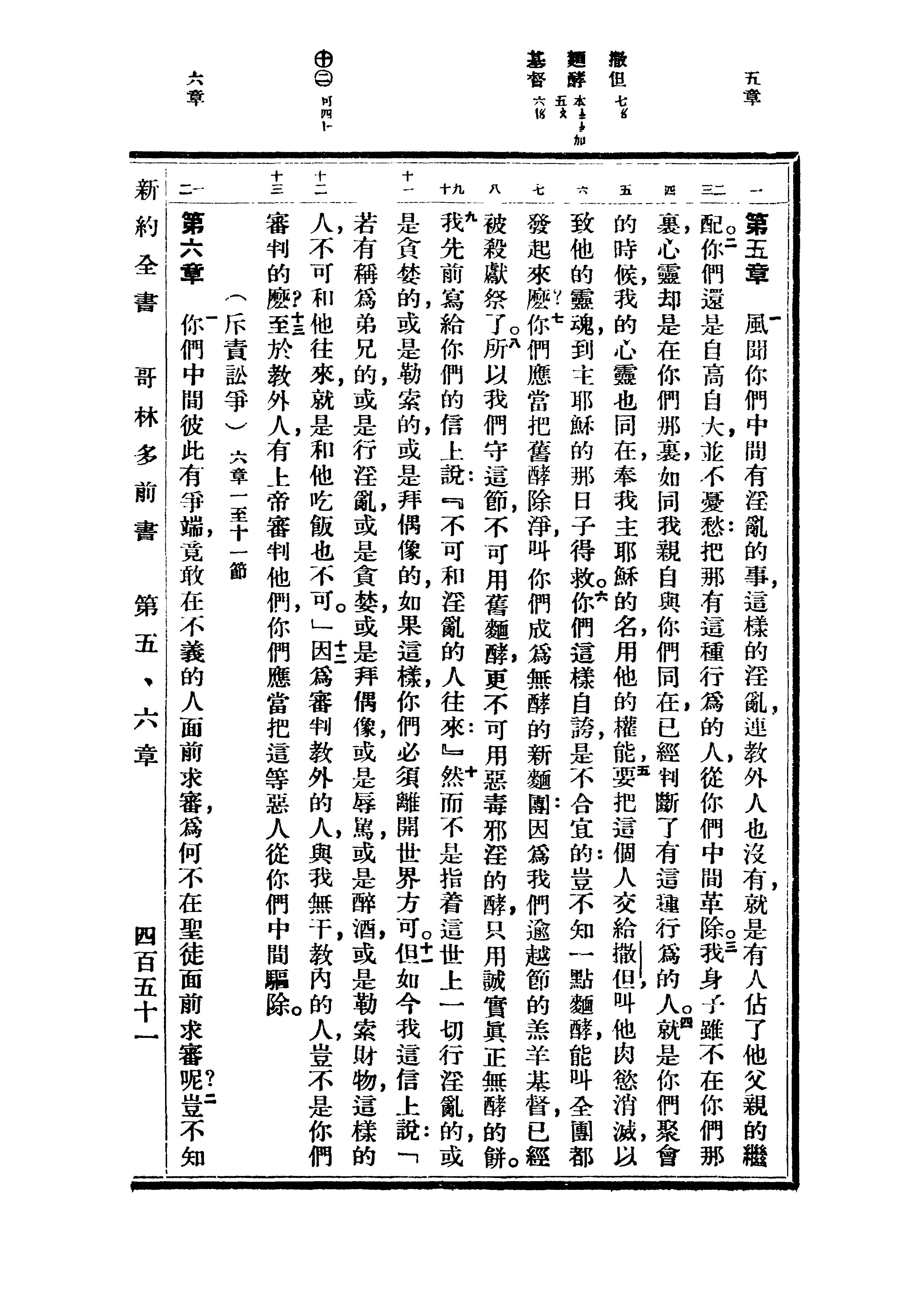 1936年重譯新約全書 哥林多前書 5 章 1 節到 6 章 1 節
