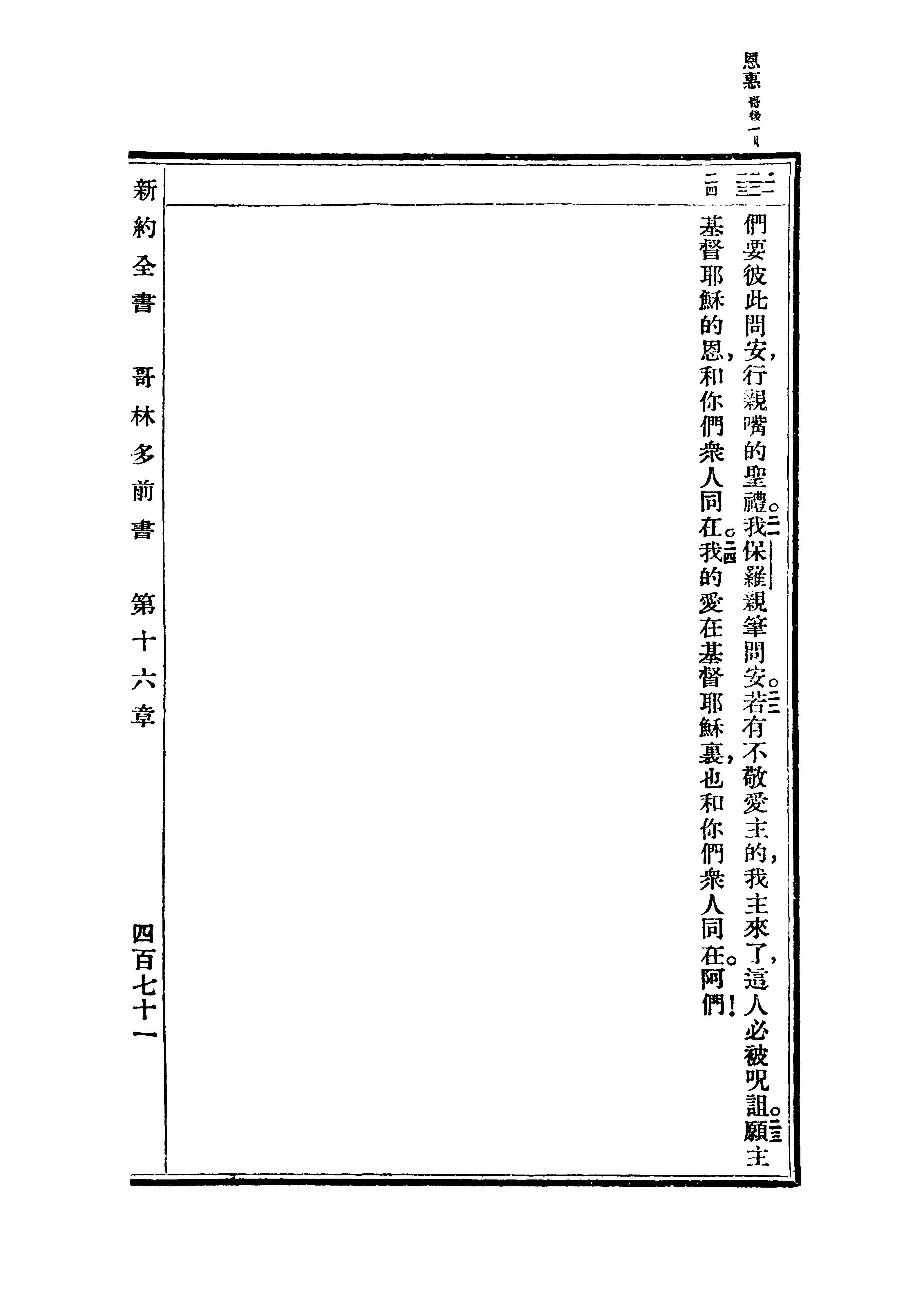 1936年重譯新約全書 哥林多前書 16 章 20 節到 16 章 24 節